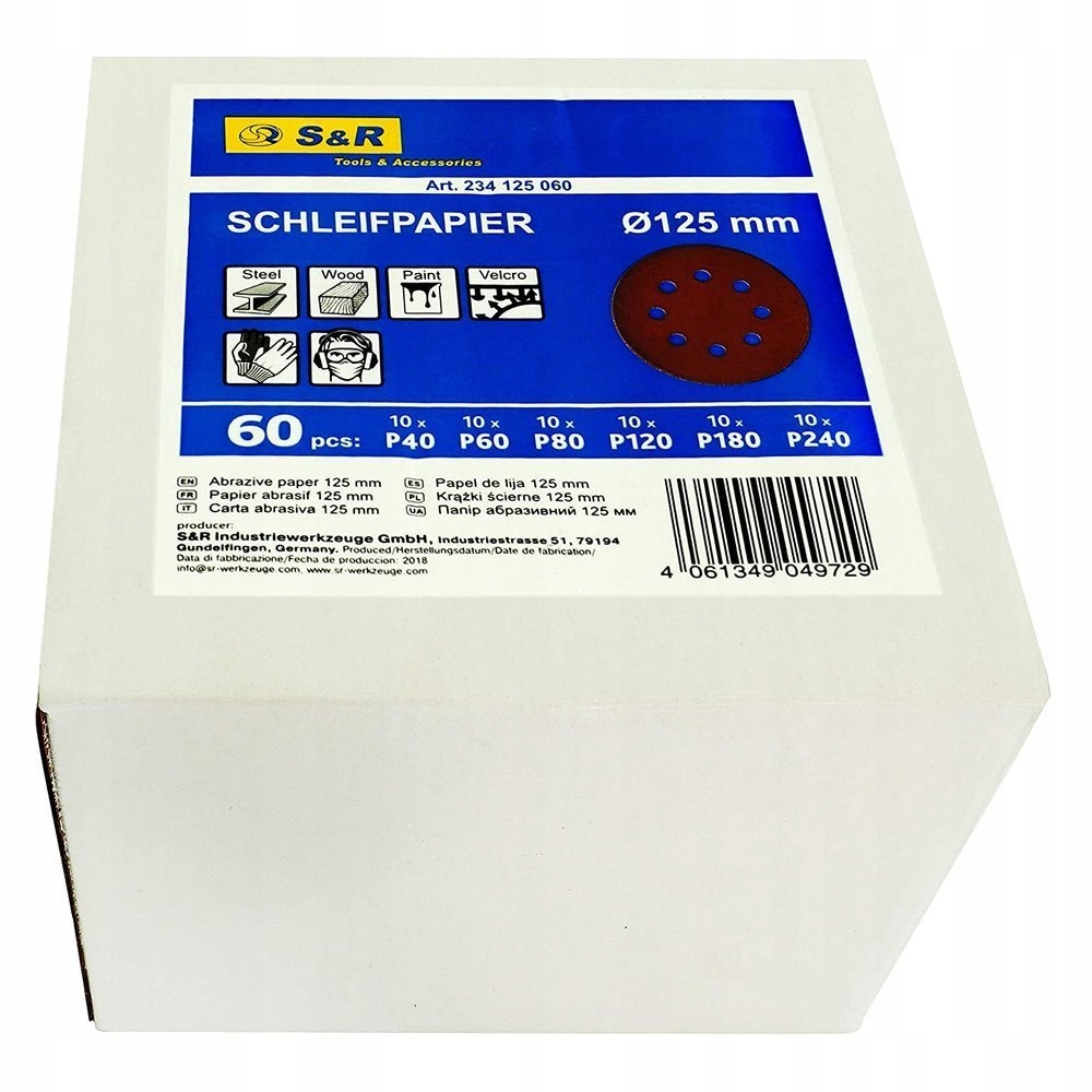 Наждачний диск для орбітальної шліфувальної машини з липучкою 125 мм 8 отворів 60 штук S&R