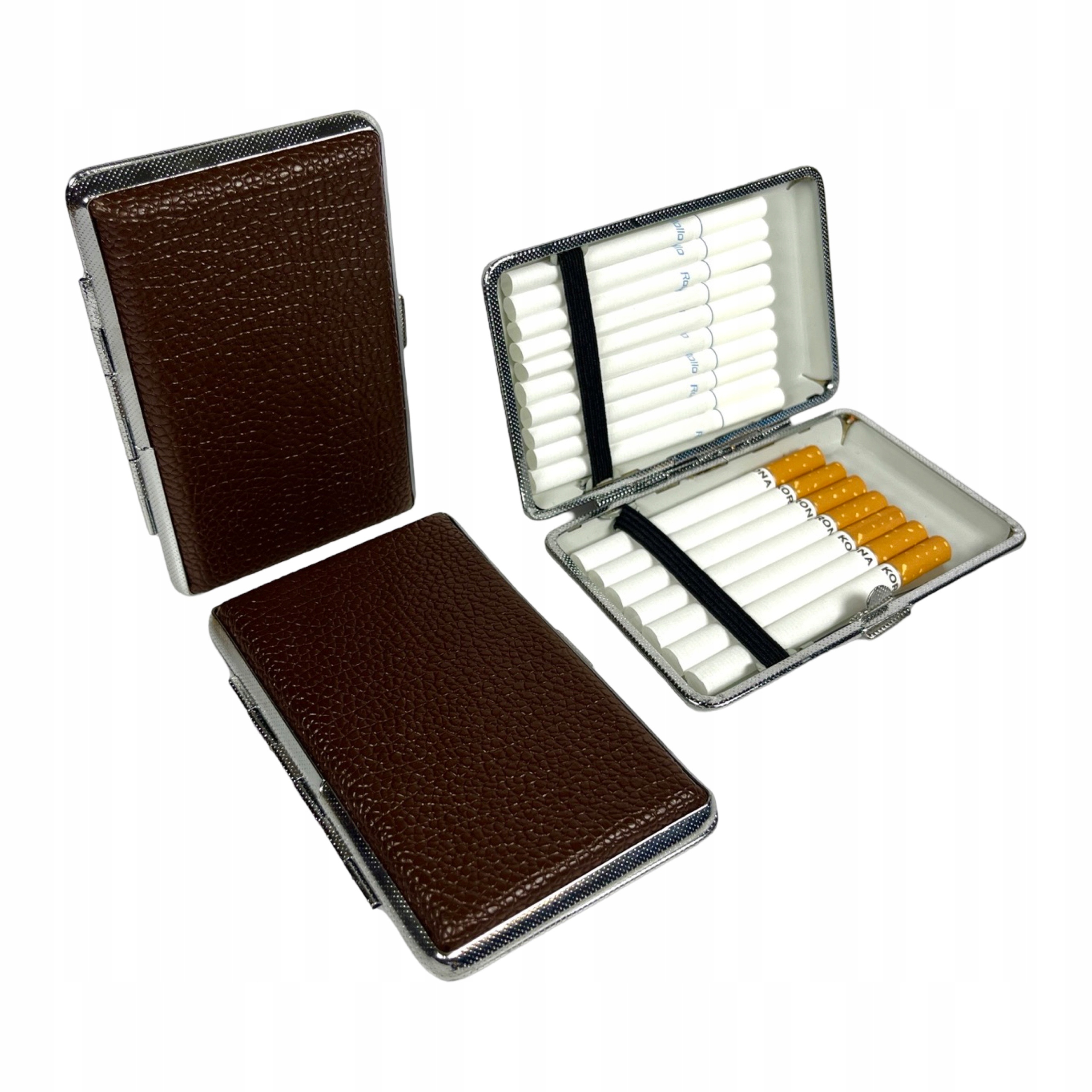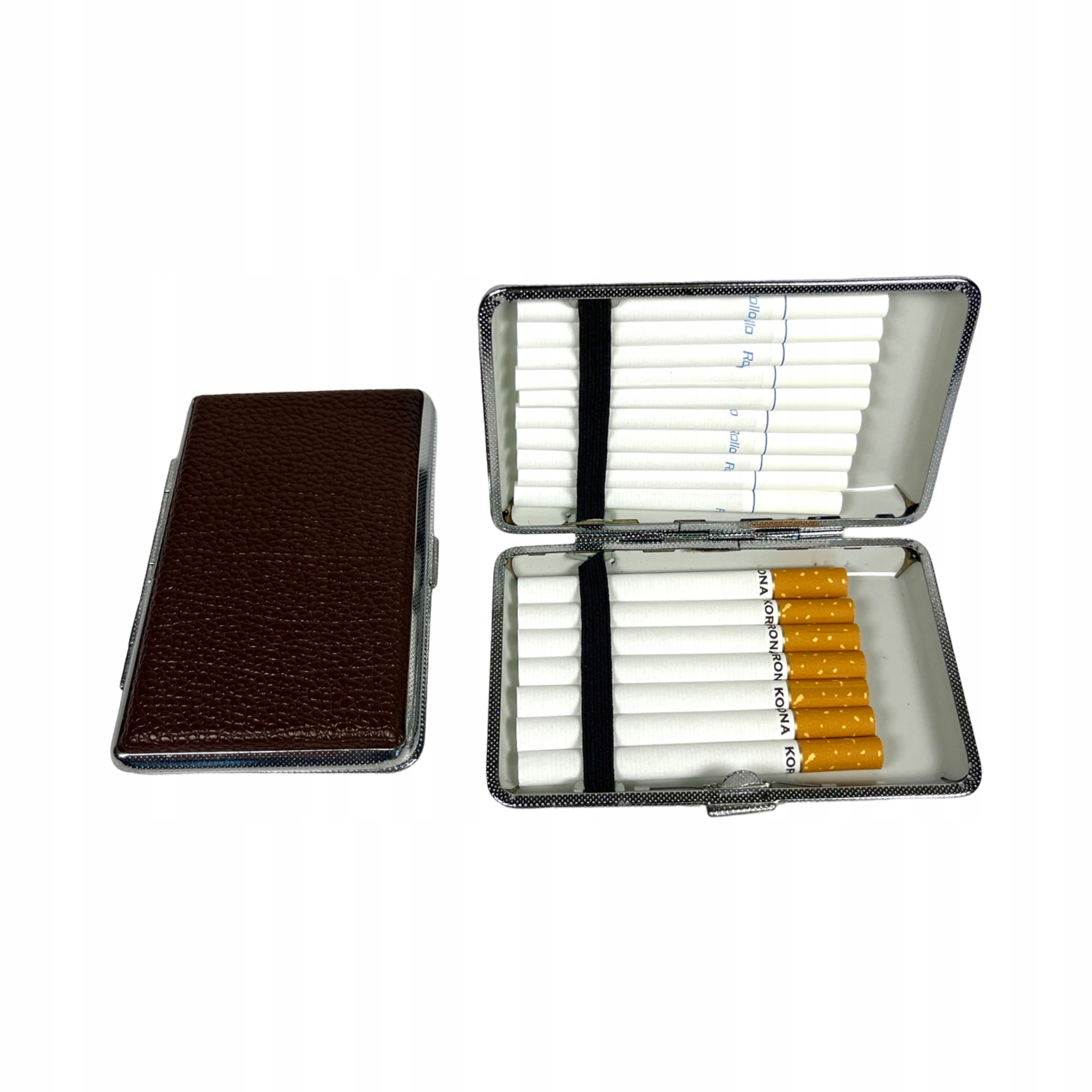 PAPIEROŚNICA SLIM na 12-18 PAPIEROSÓW 100 METALOWA EKO-SKÓRA ETUI ORGANIZER