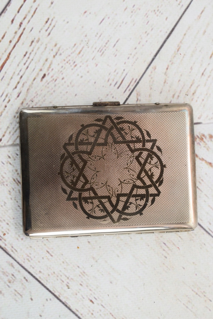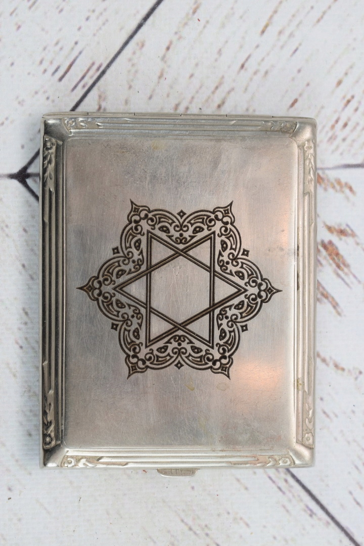 Papierośnica Żydowska - Aluminiowa - Judaica Chanuka Menora MORYC Unikat