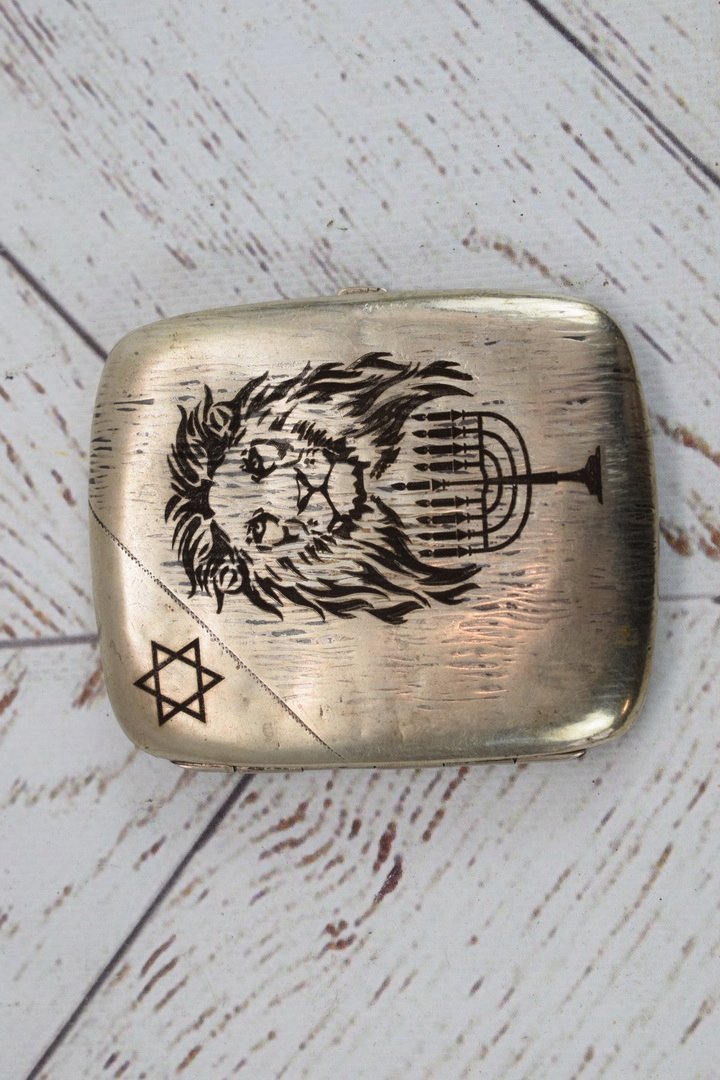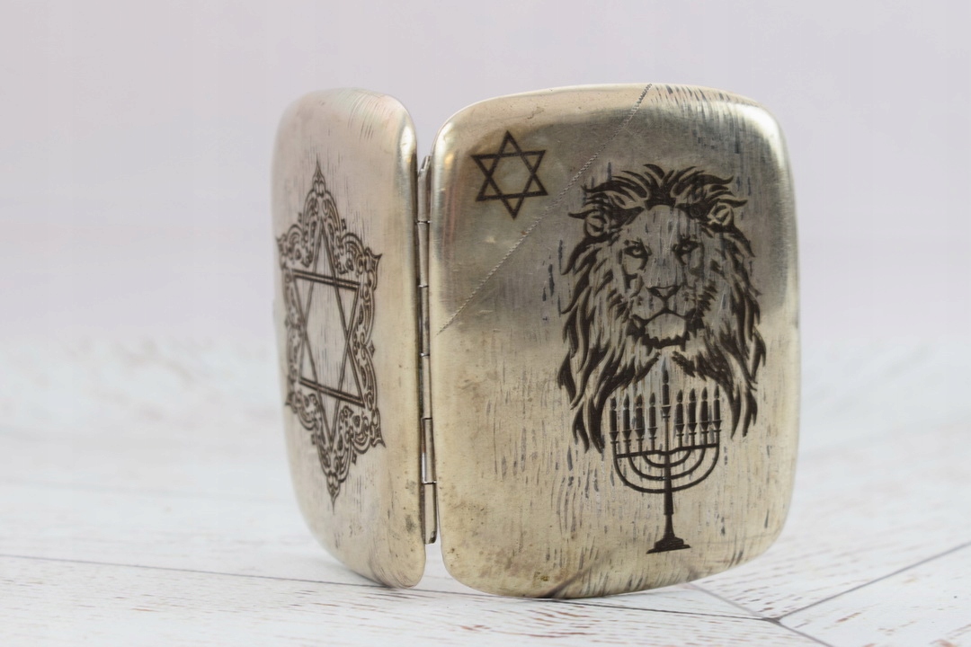 Papierośnica Żydowska - Aluminiowa - Judaica Chanuka Menora Prezent