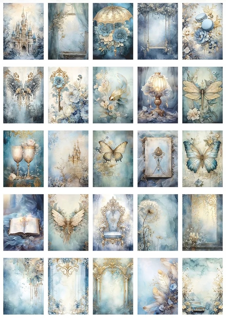 ДЕКОРАТИВНИЙ ПАПЕР СКРАПБУКІНГ 50 АРКУШІВ КВІТИ ІЛЮСТРАЦІЇ СТАРОЧНИЙ ЗАМОК