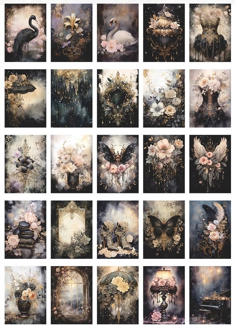 ДЕКОРАТИВНИЙ ПАПЕР ДЛЯ СКРАПБУКІНГУ 50 АРКУШІВ КВІТИ СТАРОЧНИЙ ЛЕБІДЬ