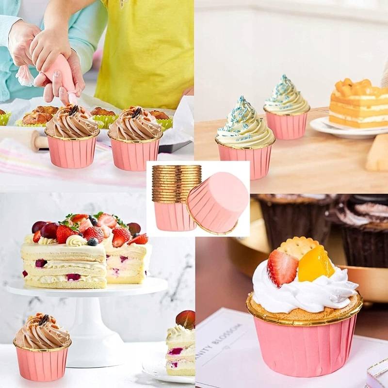 ПАПІЛОТКИ ДЛЯ МАФІНІВ РОЖЕВО-ЗОЛОТІ 50х40 мм 50 ШТУК ЖИРОСТІЙКІ