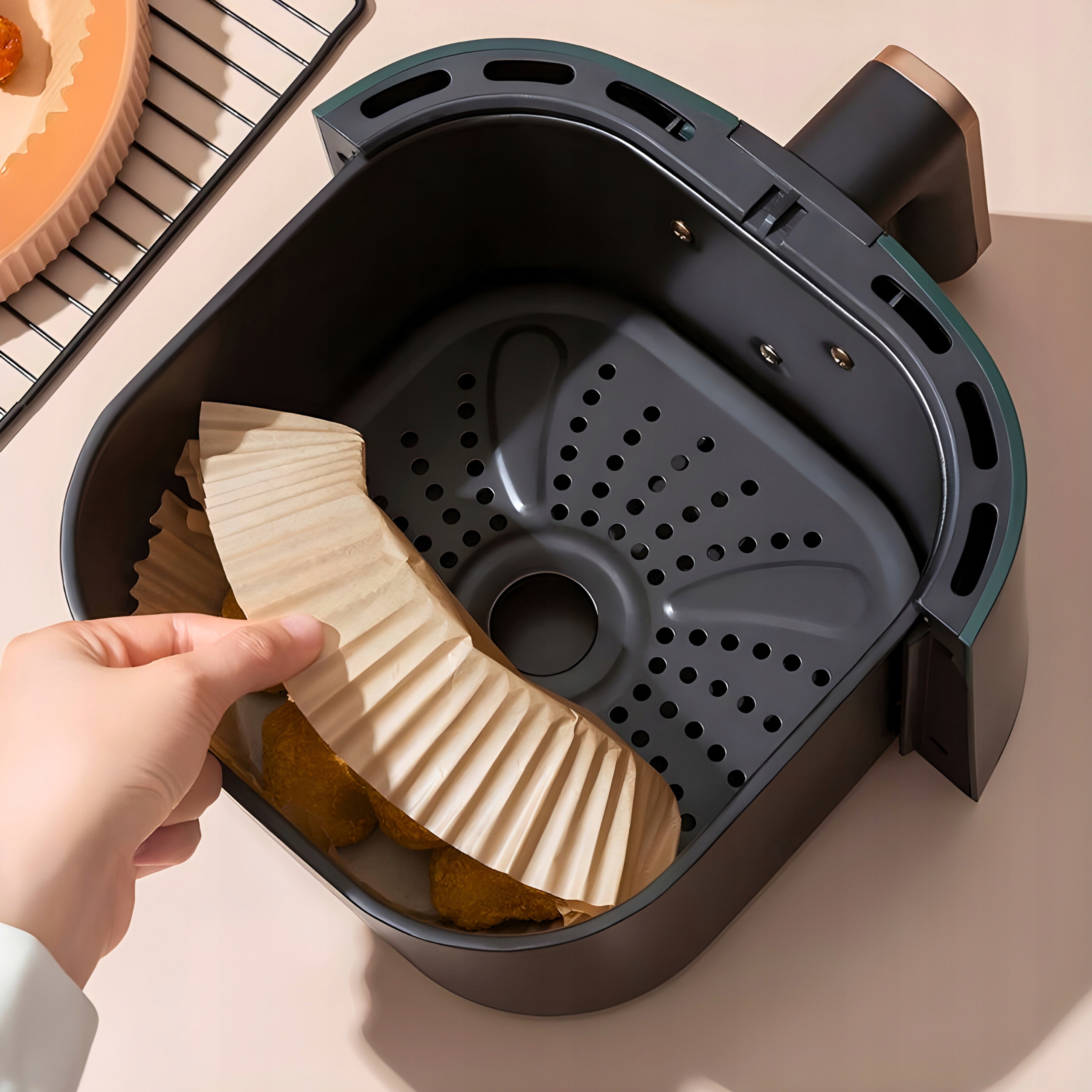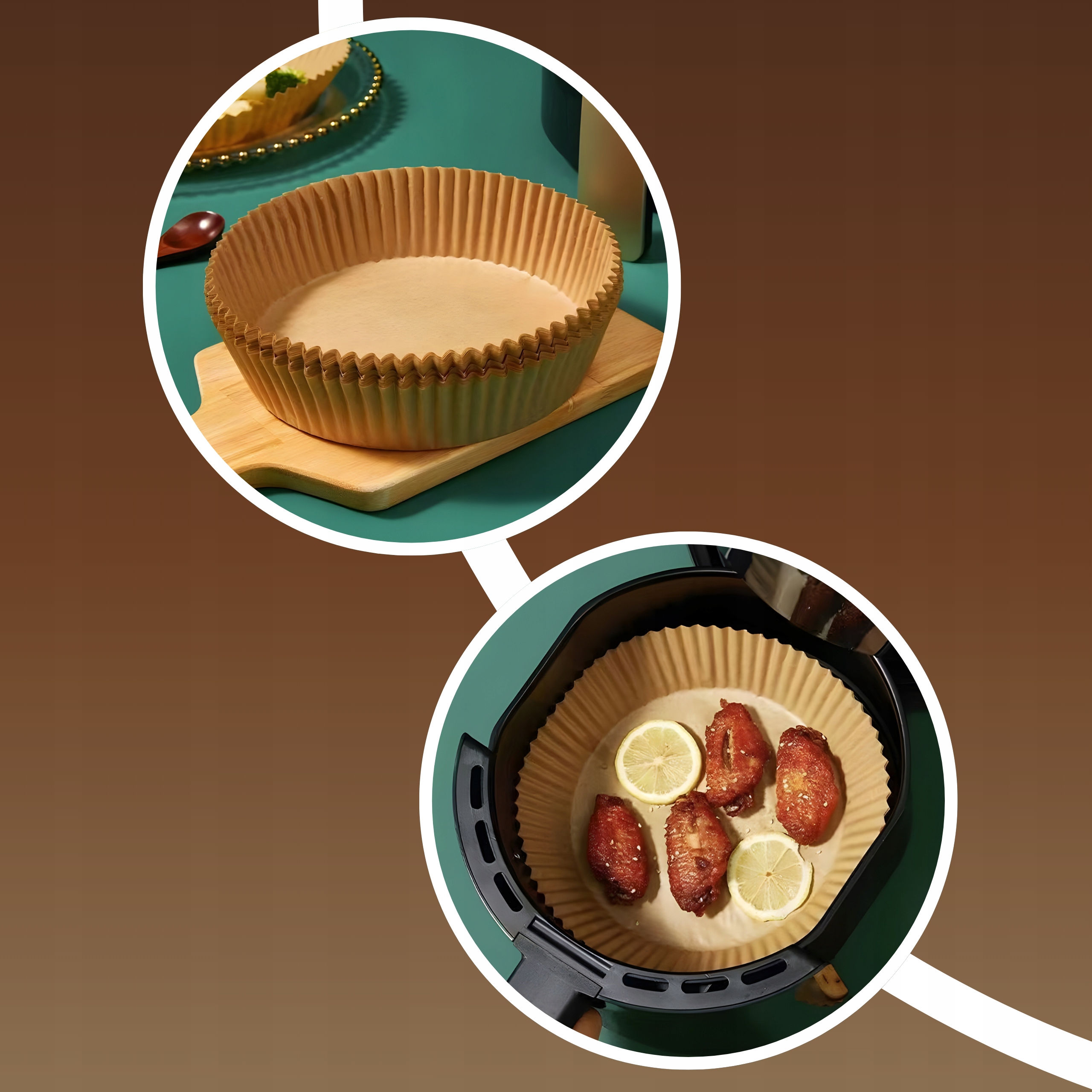 Папір відокремлює продукти від кошика та збирає жир. Захищає дно та стінки від бруду.