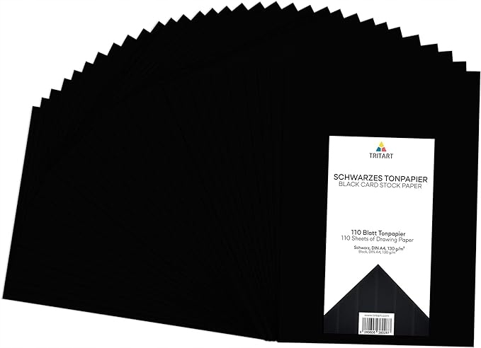 - Стійка форма та приємне відчуття– чорний крафт-картон легко різати та легко використовувати завдяки формату DIN A4 210 x 297 мм . Вага: 130 г/м². 110 аркушів з матовою поверхнею