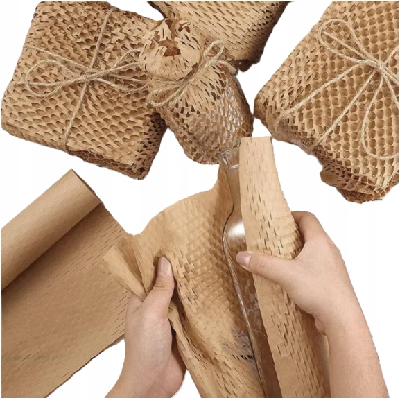Екологічний спадкоємець бульбашкової плівки: папір розрізають таким чином, що при розтягуванні він створює структуру, схожу на бджолині стільники. Це рішення подвоює його довжину та об'єм і таким чином забезпечує особливо ефективний захистпредметів під час транспортування. Порізаний папір також відрізняється своєю естетичністю: папір не пилить і не осідає на вмісті упаковки, а його унікальна структура виглядає елегантно і сучасно. Продукт повністю біологічно розкладається та його легко утилізувати.