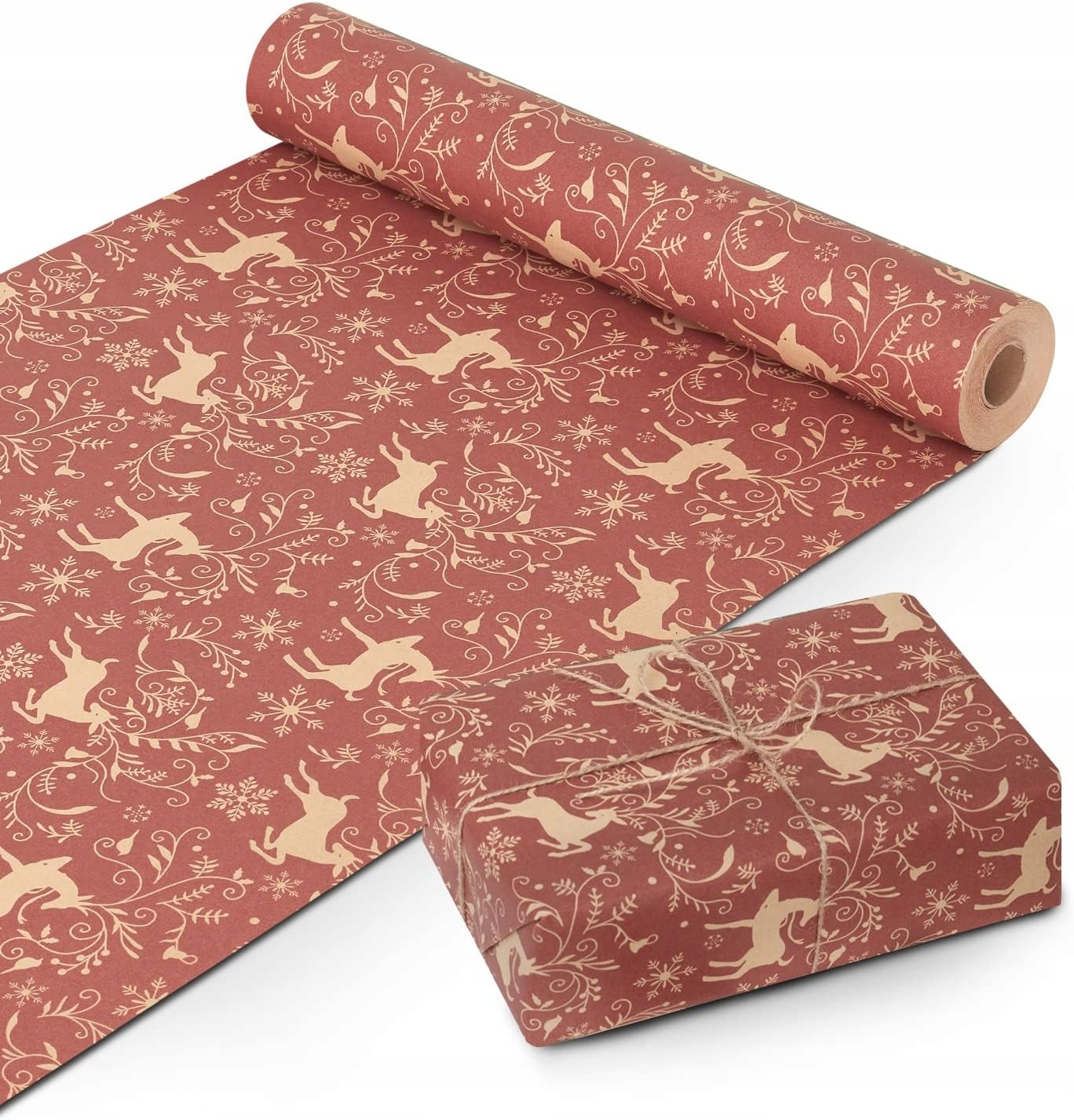 ПАПІР ПАКУВАЛЬНИЙ ПОДАРУНКОВИЙ ЧЕРВОНИЙ РІЗДВЯНИЙ ОЛЕНЬ 44см 25м 100г/м²