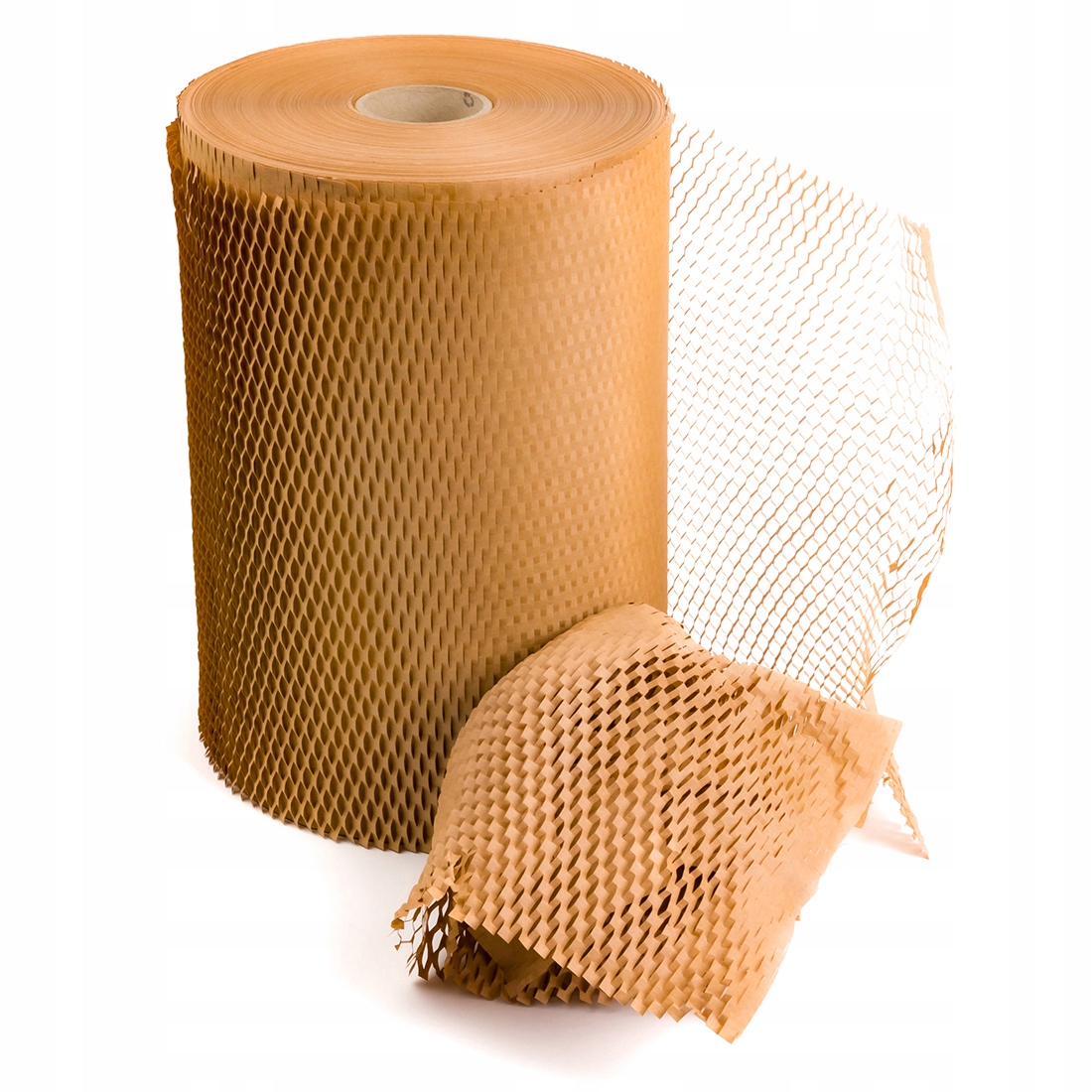 Обгортковий папір - це екологічне рішення для захисту продуктів під час транспортування. Завдяки стільникової структурі, після загортання об'єкт набуває об'єму і нагадує пухирчасту плівку. Обгортковий папір намотується в рулон, тому ви можете легко відміряти та відрізати потрібну довжину. Розрізи дозволяють додатково розтягнути лист. Великою перевагою такої упаковки є естетичність. Делікатні вироби ідеально захищені та виглядають привабливо. Стільниковий папір все частіше використовується для упаковки, наприклад, косметики, харчових продуктів або будь-яких прикрас. Використання екологічних рішень дуже добре сприймається клієнтами.