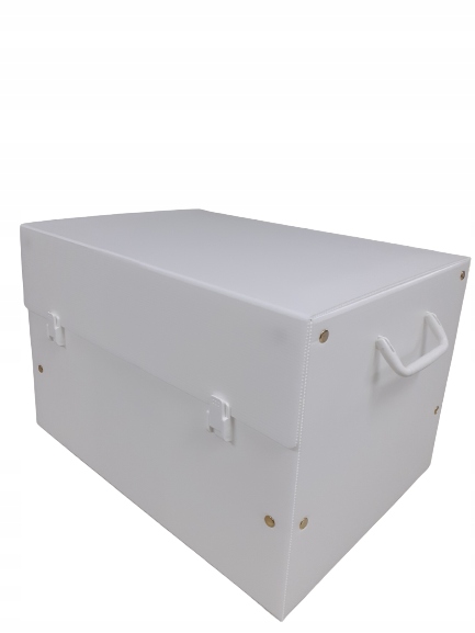 Легкий, міцний, вологостійкий ящик для папок, виготовлений з трубчастого поліпропілену, широко відомого як tekpol. Внутрішні розміри 450x320x290 мм, підходять для 6 папок 75 мм (як на фото), 9 штук папок 50 мм або, наприклад, 5 штук 80-х і однієї 50-х років тощо.