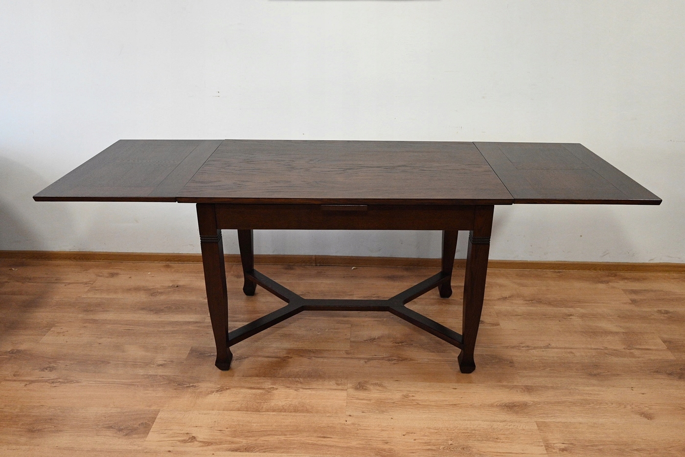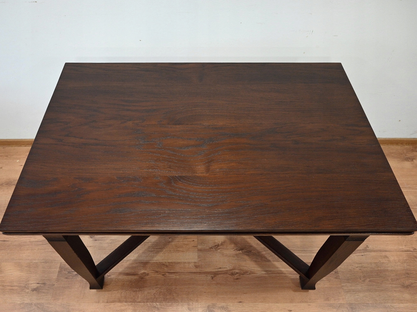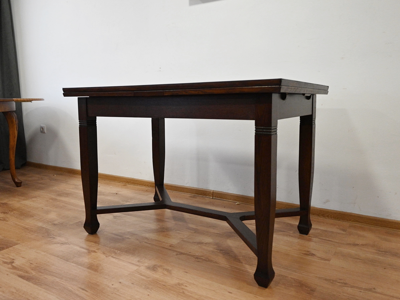 Дуже хороший стан. Меблі, підготовлені до використання. Зовнішні поверхні та центр меблів були оновлені. Меблі вже мають свої роки та сліди минулого часу, що не впливає на його естетичний прийом, вони є свідченням справжності меблів. Стіл можна відразу поставити в квартиру.