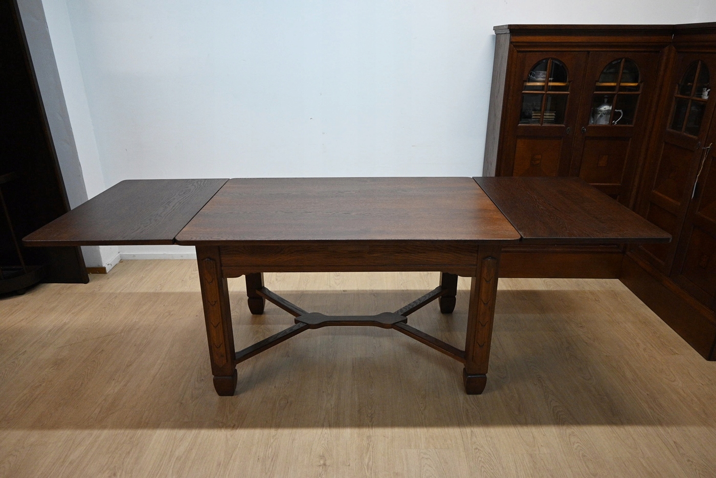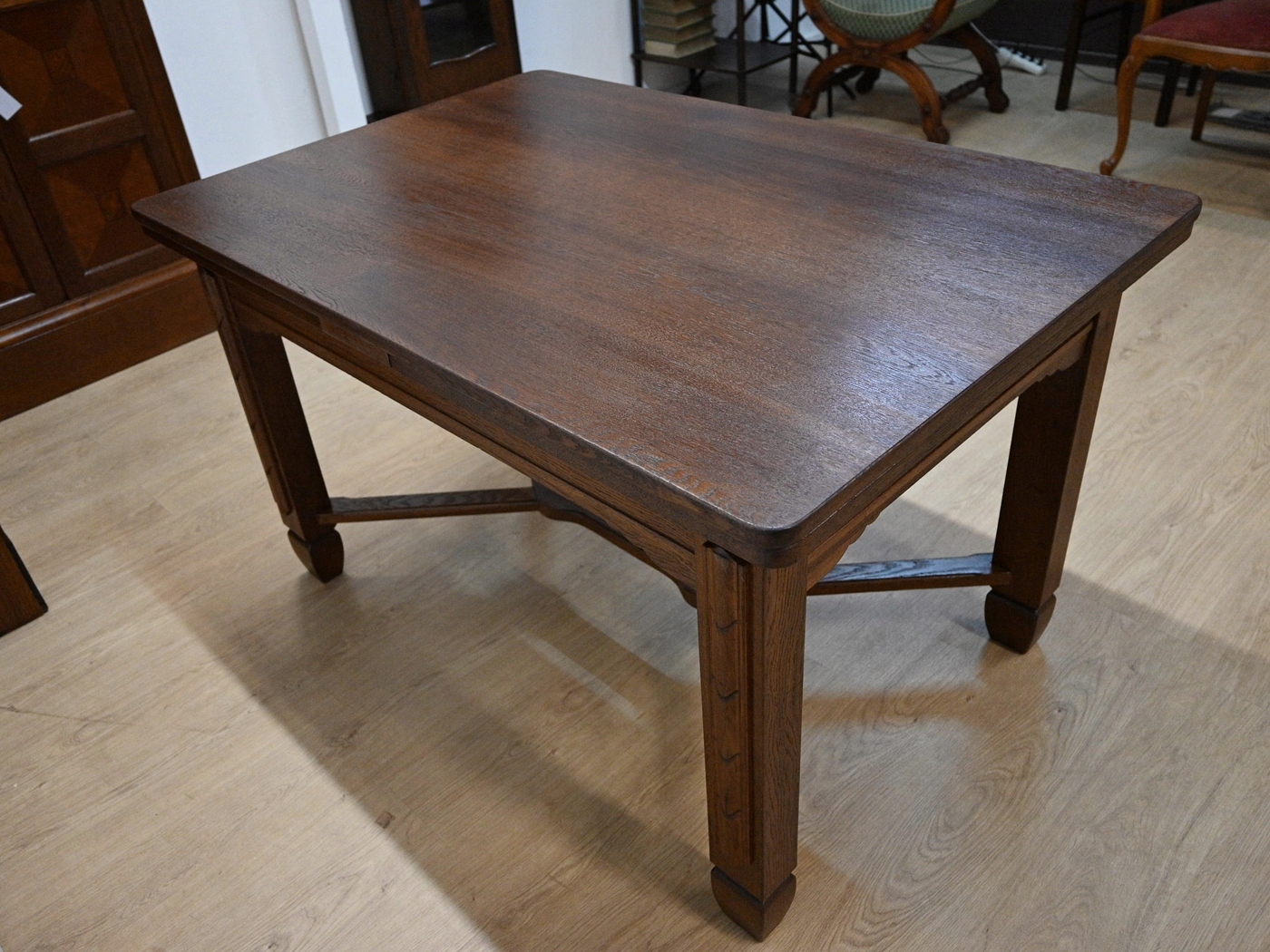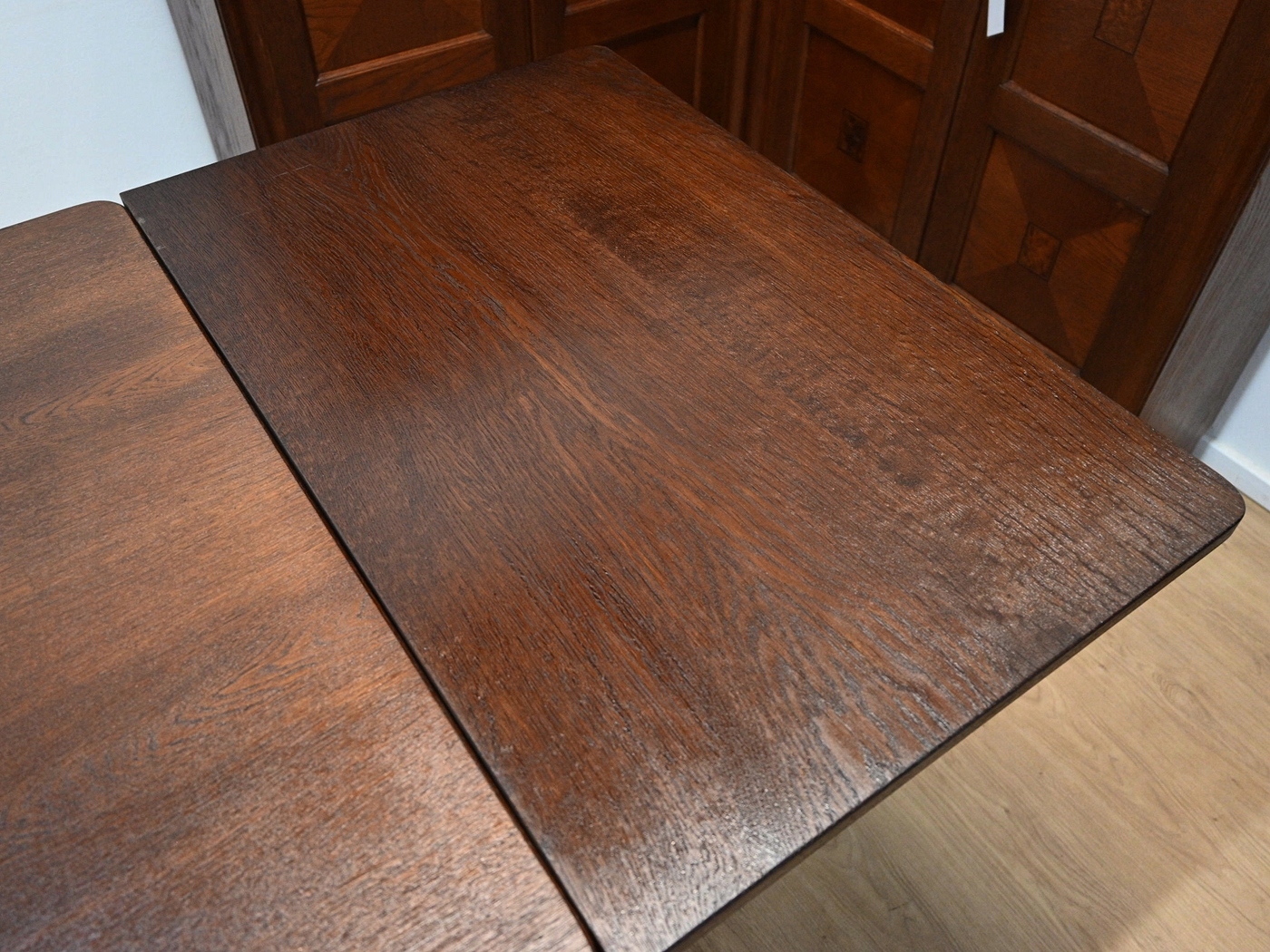 Дуже хороший стан. Меблі, підготовлені до використання. Оновлений. Меблі вже мають свої роки та сліди минулого часу, що не впливає на його естетичний прийом, вони є свідченням справжності меблів. Стіл можна негайно поставити в квартиру.