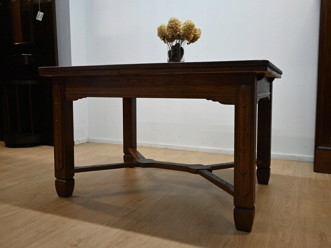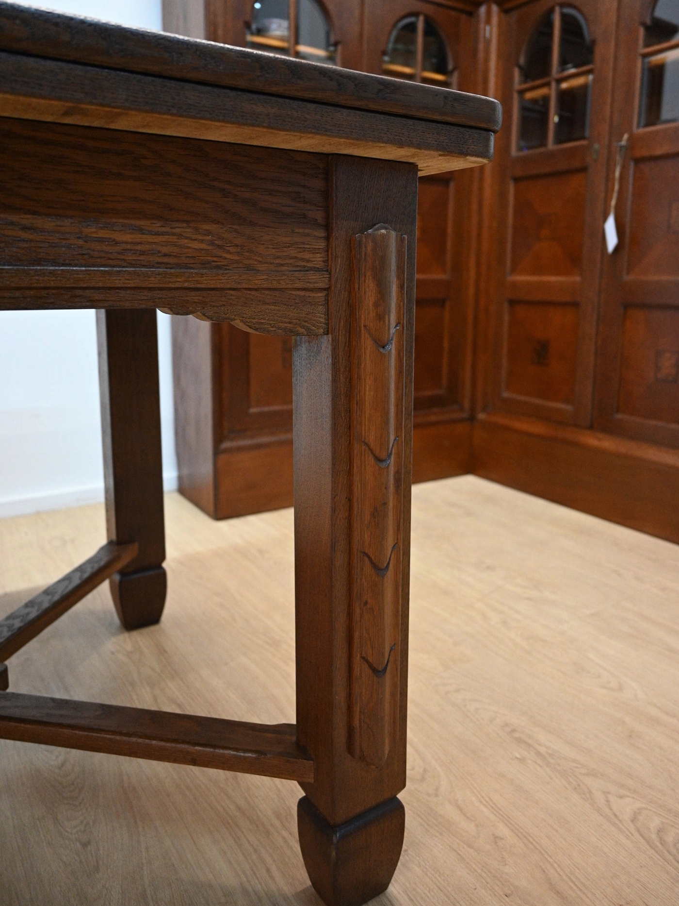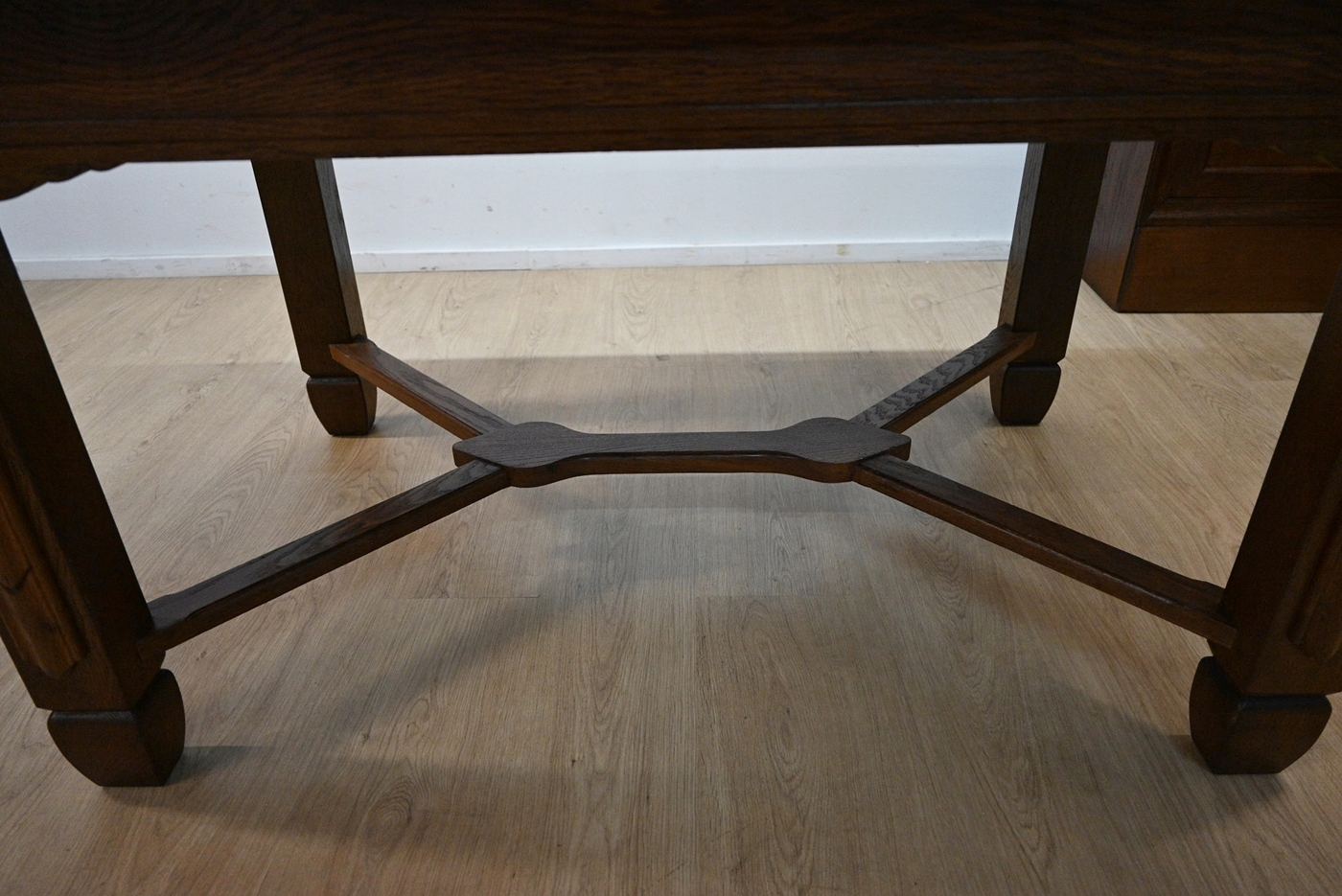 Дуже хороший стан. Меблі, підготовлені до використання. Оновлений. Меблі вже мають свої роки та сліди минулого часу, що не впливає на його естетичний прийом, вони є свідченням справжності меблів. Стіл можна негайно поставити в квартиру.