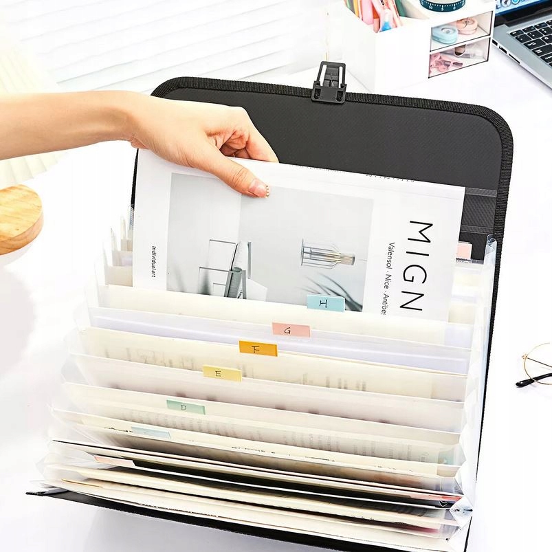 економить час - 13 різнокольорових кишень із верхніми вкладками створюють незалежні місця для документів. Ви можете використовувати надані барвисті мітки для сортування документів за категорією, що скорочує час пошуку документів.