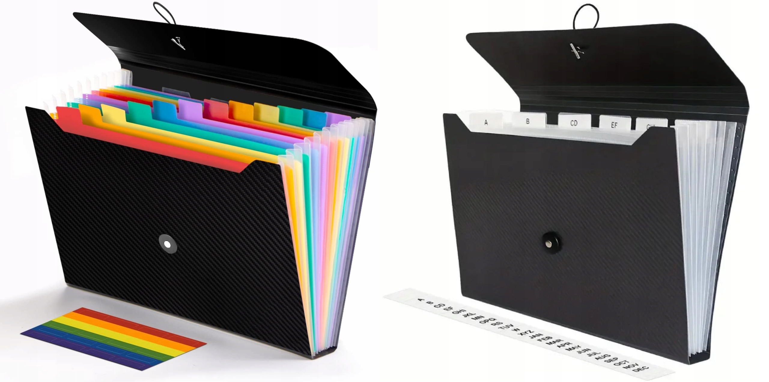 економить час - 13 різнокольорових кишень із верхніми вкладками створюють незалежні місця для документів. Ви можете використовувати надані барвисті мітки для сортування документів за категорією, що скорочує час пошуку документів.