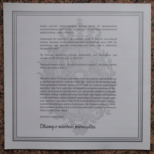 Покупая «ПАПКИ ДЛЯ МОНЕТИ 50 ЗЛ WŁADYSŁAW ТА LOKIETEK» данный товар из каталога «Папки и листовки» вы можете быть уверены, что после оформления заказа, доставки в Украину, вы получите именно то, что заказывали, в оговоренные сроки и европейского качества.