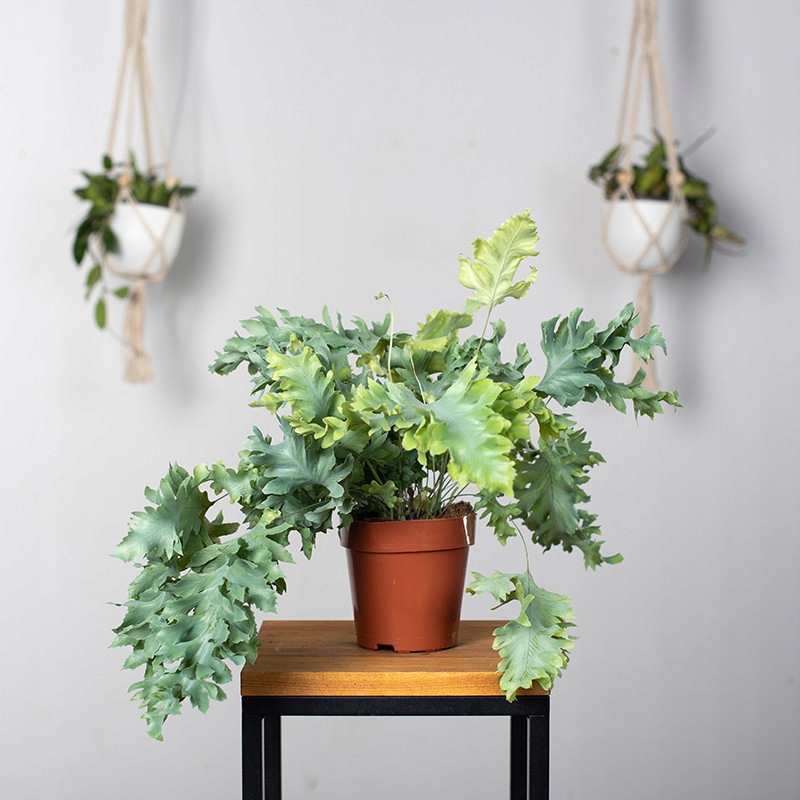 Флебодіум (Phlebodium aureum 'Davana') — це блідо-зелена папороть із злегка хвилястим листям, повнішим і ширшим, ніж у сорту 'Blue Star'. Його повітряні кореневища, схожі на кролячі ніжки, з часом почнуть обвиватися навколо горщика, в якому він росте. Це дуже густо зростаюча рослина, яка створює ефект моря в наших інтер’єрах. Як і будь-яка папороть, він простий у вирощуванні і має високі здібності до очищення повітря. Любить затінені та напівтінисті місця та високу вологість повітря.