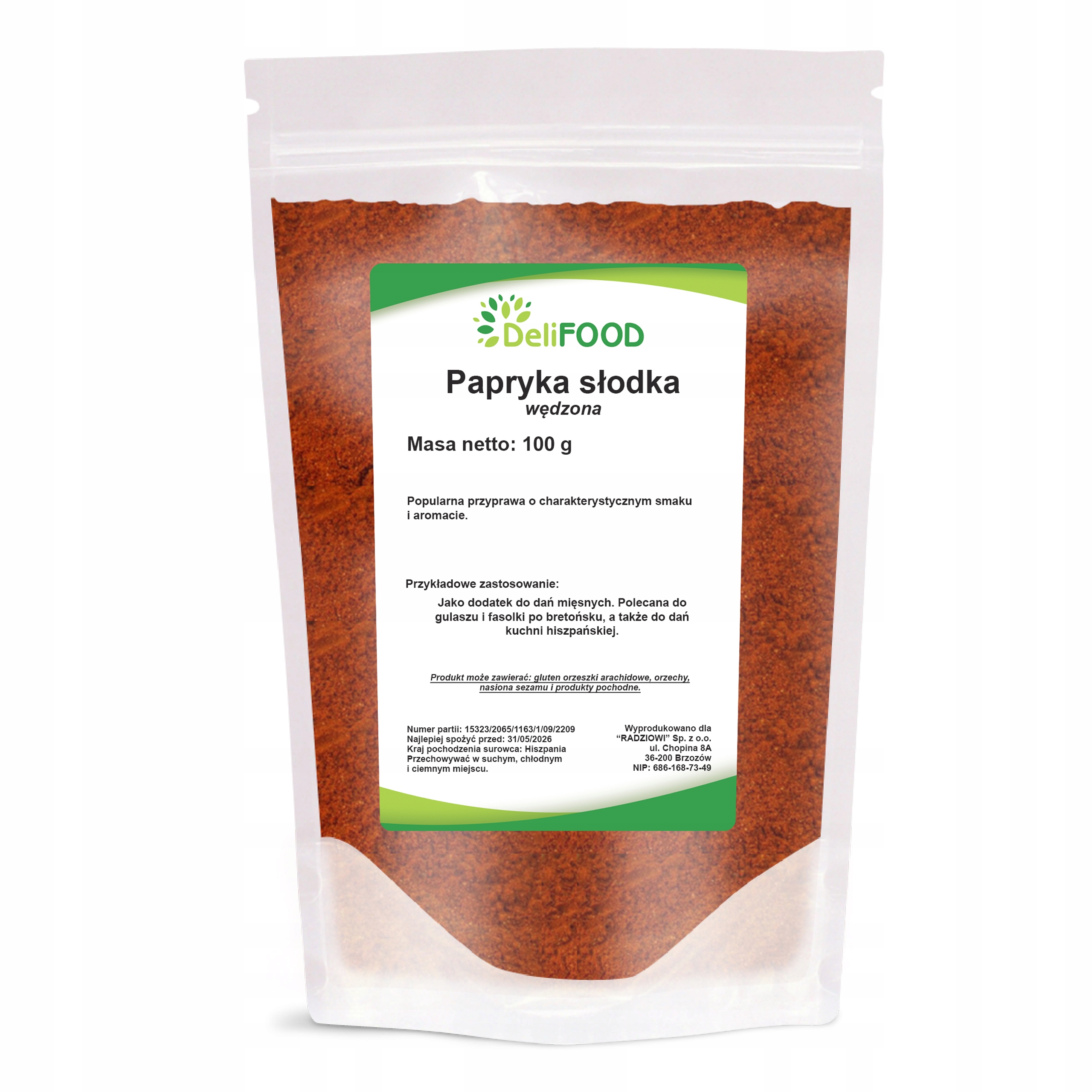 PAPRYKA SŁODKA WĘDZONA 100G MIELONA AROMATYCZNA WYRAZISTA DELIFOOD