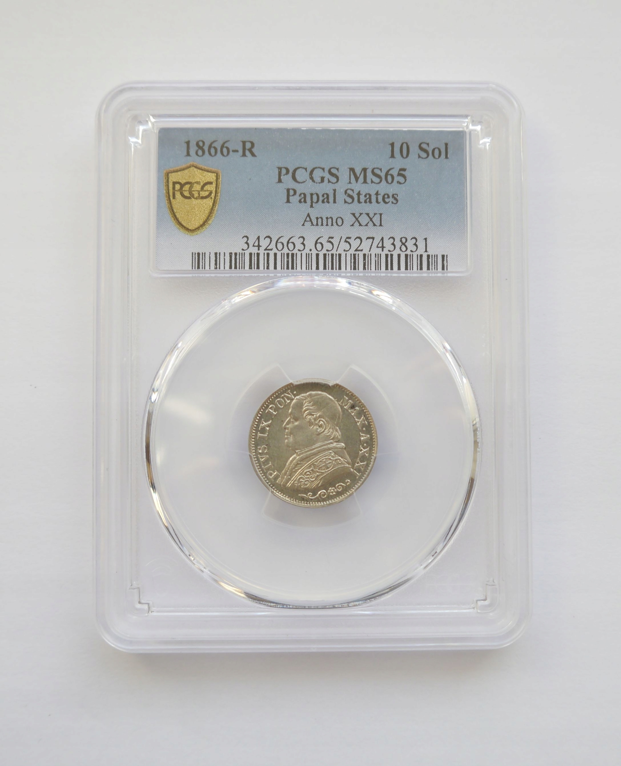 ПАПСЬКА ДЕРЖАВА ВАТИКАН 10 SOLDI 1866 R PCGS MS65