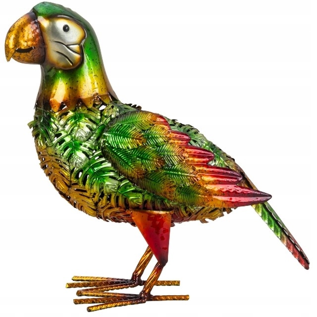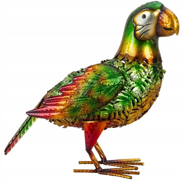 Це ідеальна прикраса для вашого саду! Ця металева фігурка папуги виділяється дивовижними деталями, які роблять її справжньою.