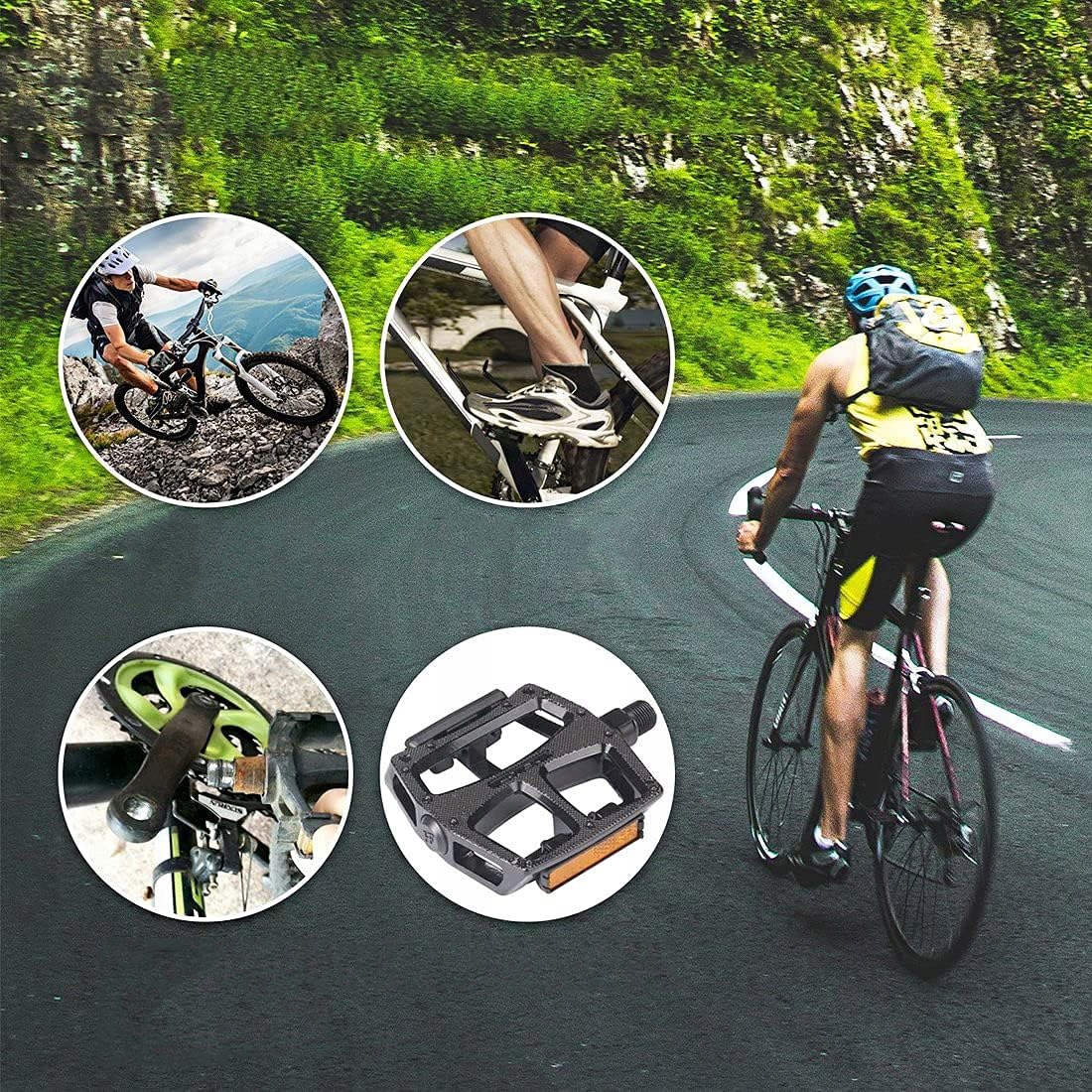 🎉🎉【Міцний, легкий і довговічний】Виготовлений із високоякісного матеріалу з герметичною конструкцією, міцний і міцний , стійка до корозії та зносу, міцна та міцна велосипедна педаль може витримувати великі навантаження, мінімізує тертя та заощаджує до 30% фізичних зусиль.