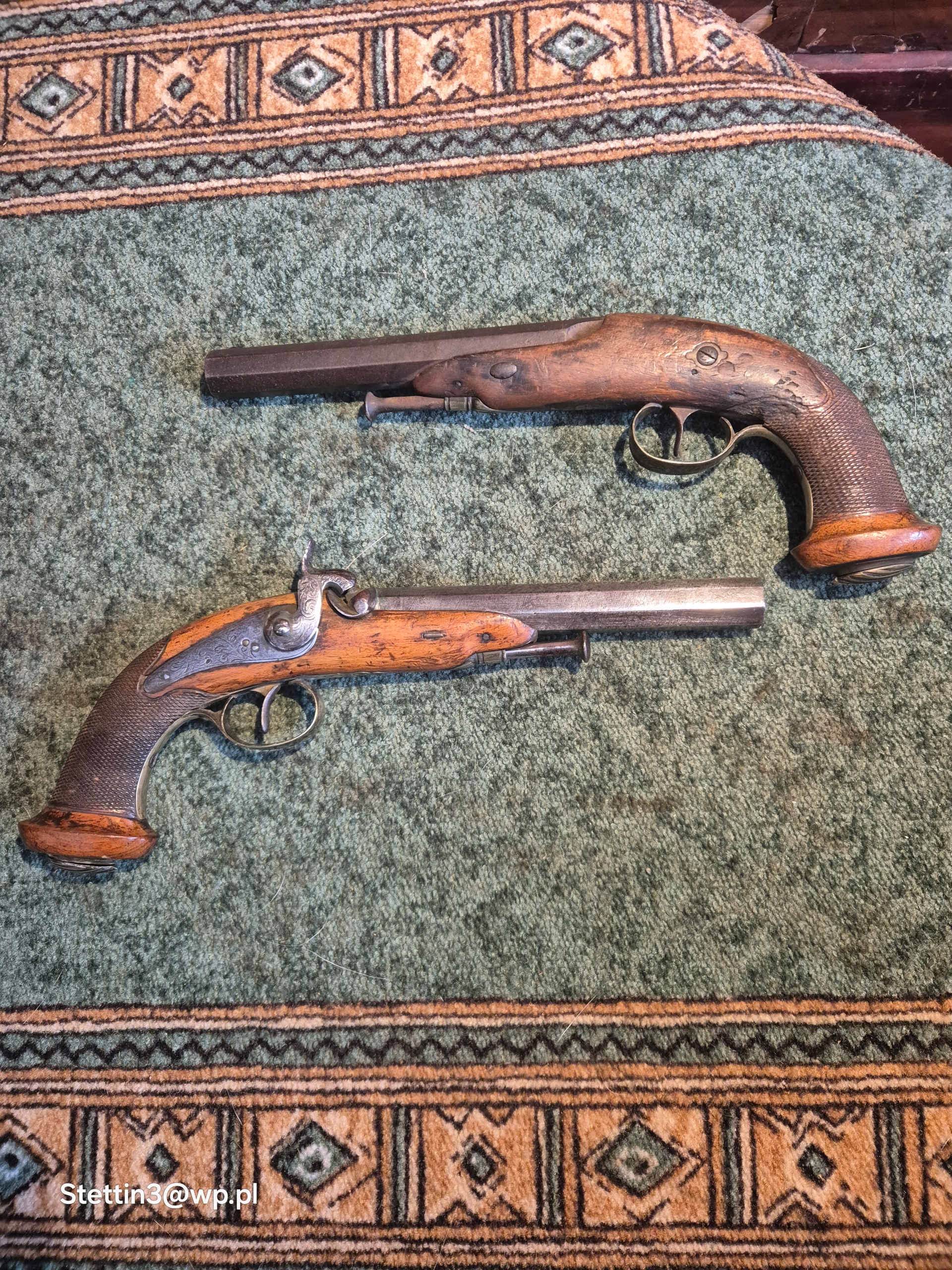 У хорошому стані 100 % оригінальної європейської пари пістолетів Capson. Один повний, очищений. Функціональний подвійний замок, сильна весна. Оригінальний злив. Patchbox для Capshans в ручці. Останній без крана був у стані пошуку. Різьбові бочки. Справжнє фото. Рекомендую.