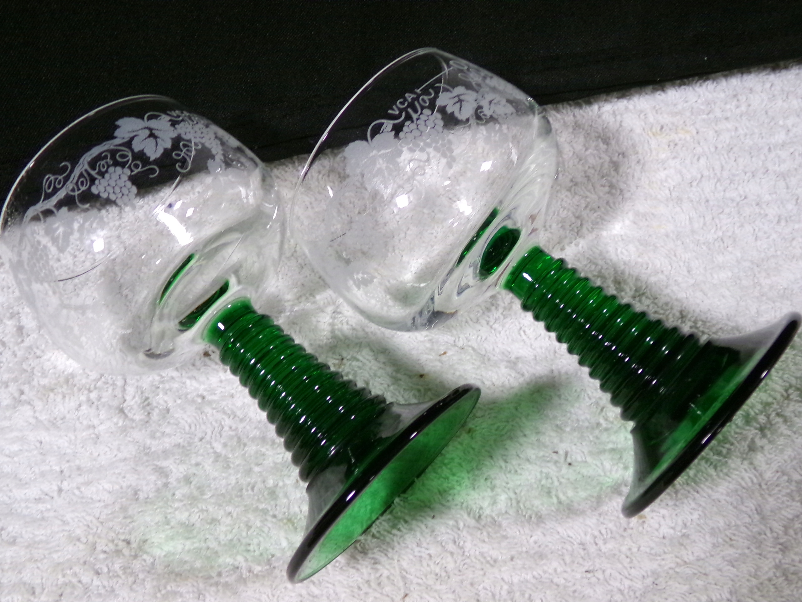 Пара скляних ремерів, висота 11,5 см, діаметр центру 6,5 см, місткість 100 мл, вага 0,30 кг. Дуже хороший стан, без пошкоджень.