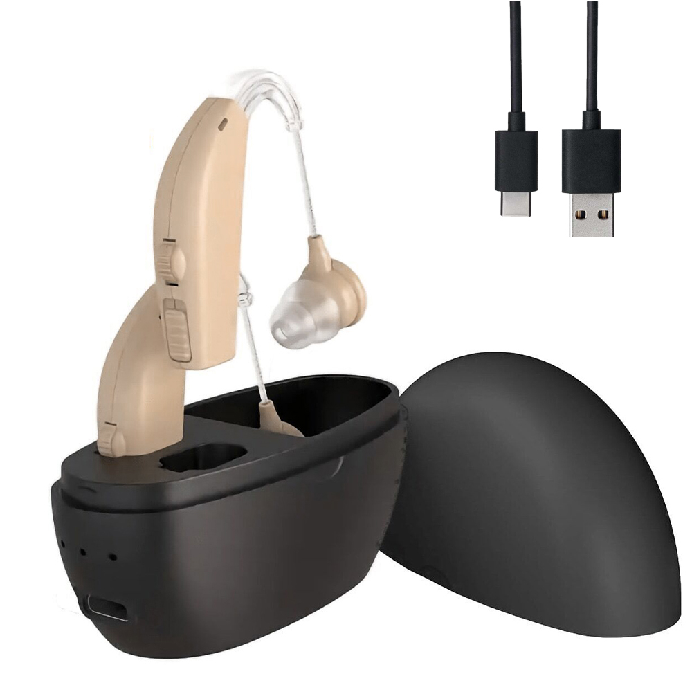 - 🔋 Довгий час роботи: b> Слухові апарати можна заряджати протягом 3 годин, а час роботи становить до 25 годин. Акумуляторний футляр повністю заряджений і може заряджати камеру 4-5 разів.