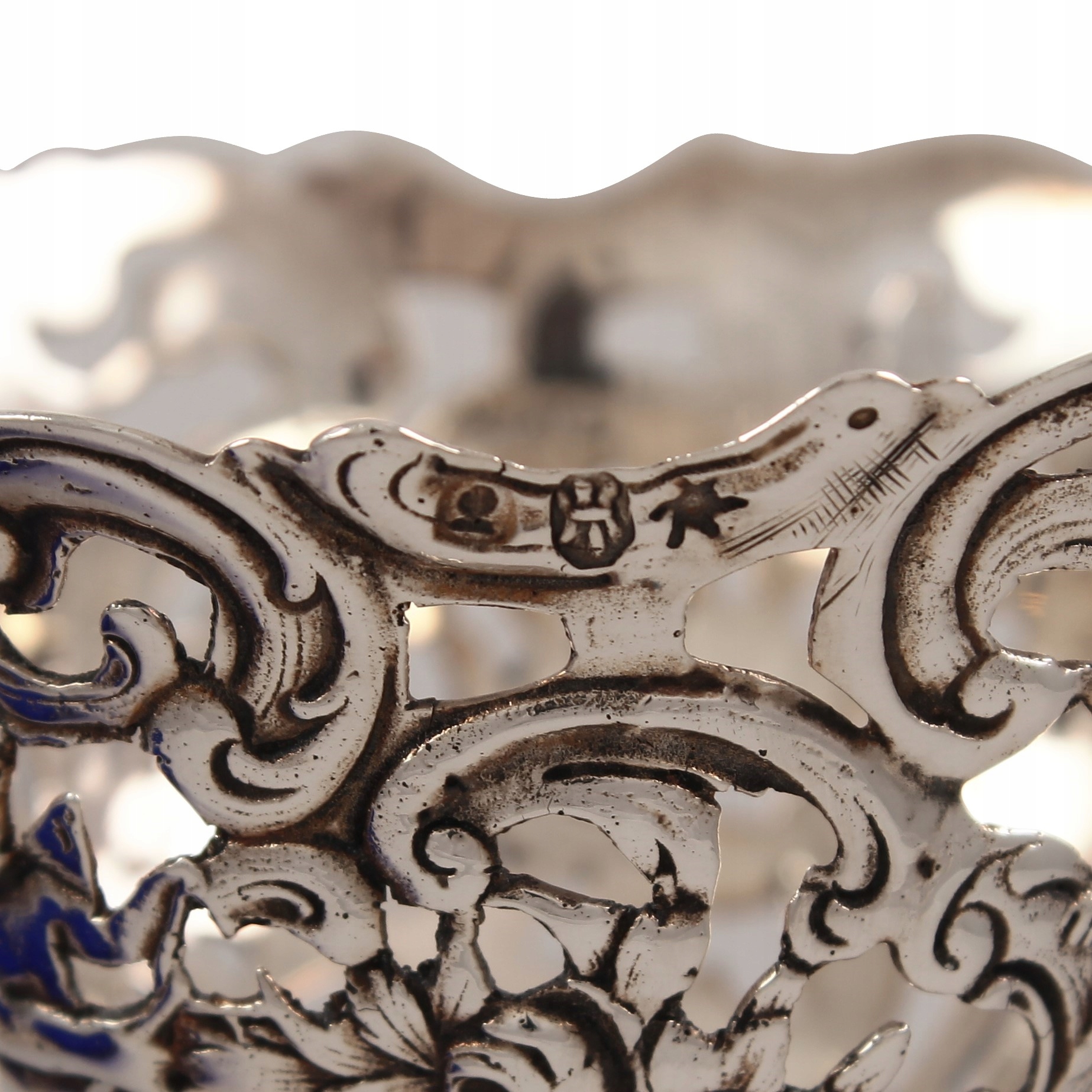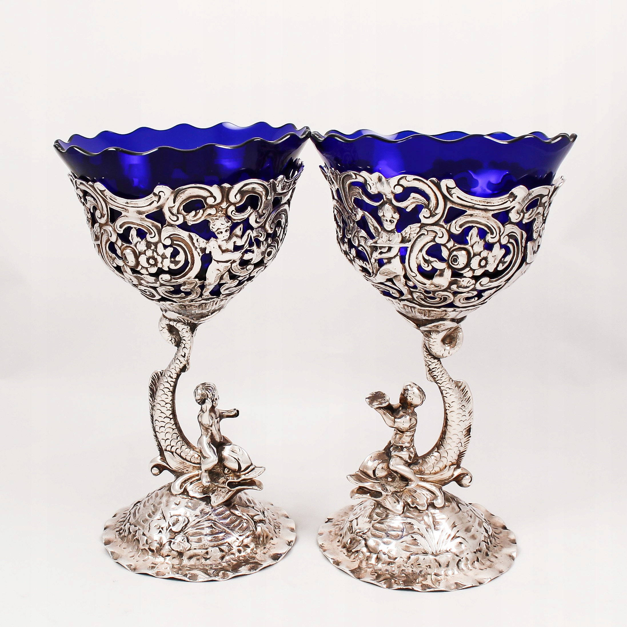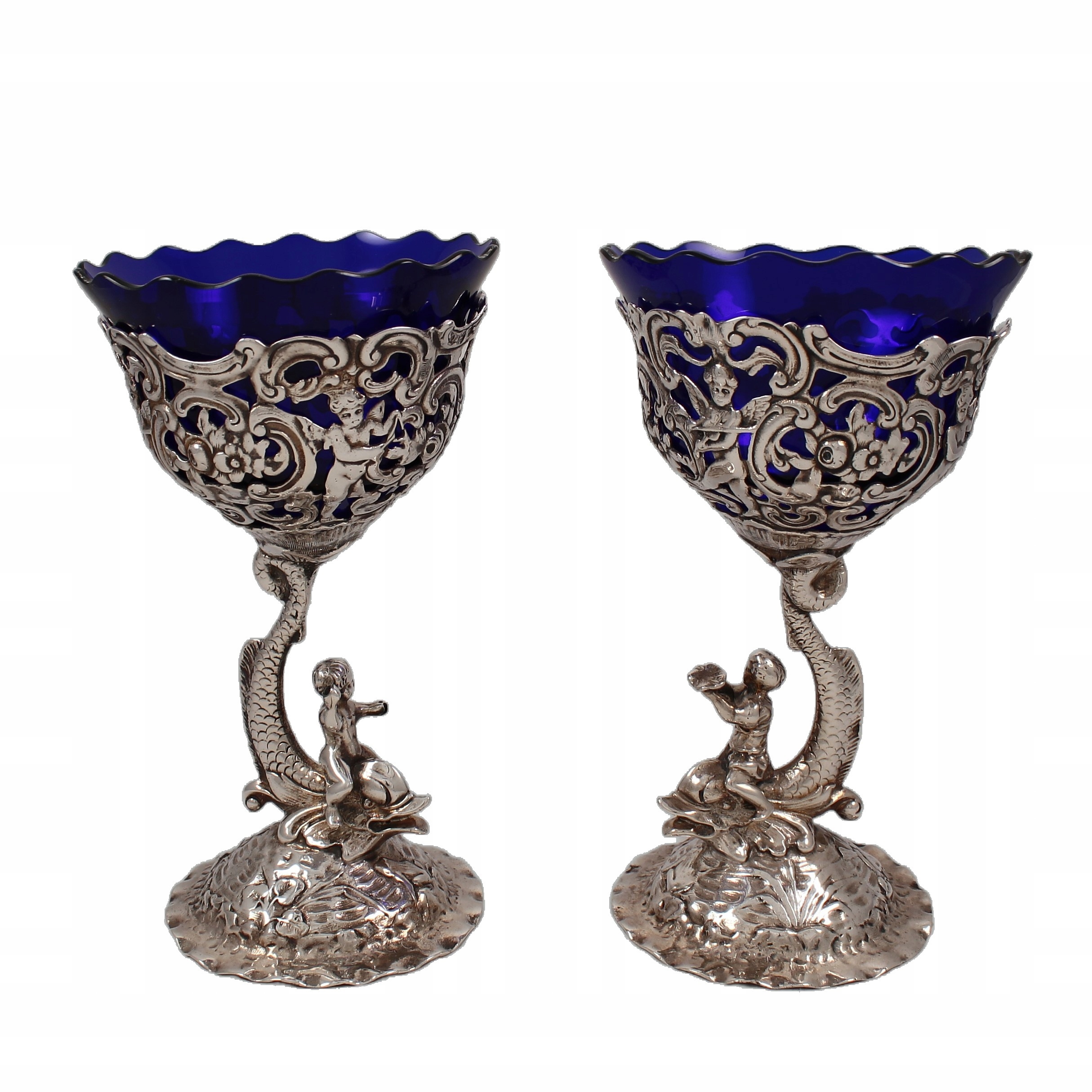 Пара срібних келихів з кобальтовим склом