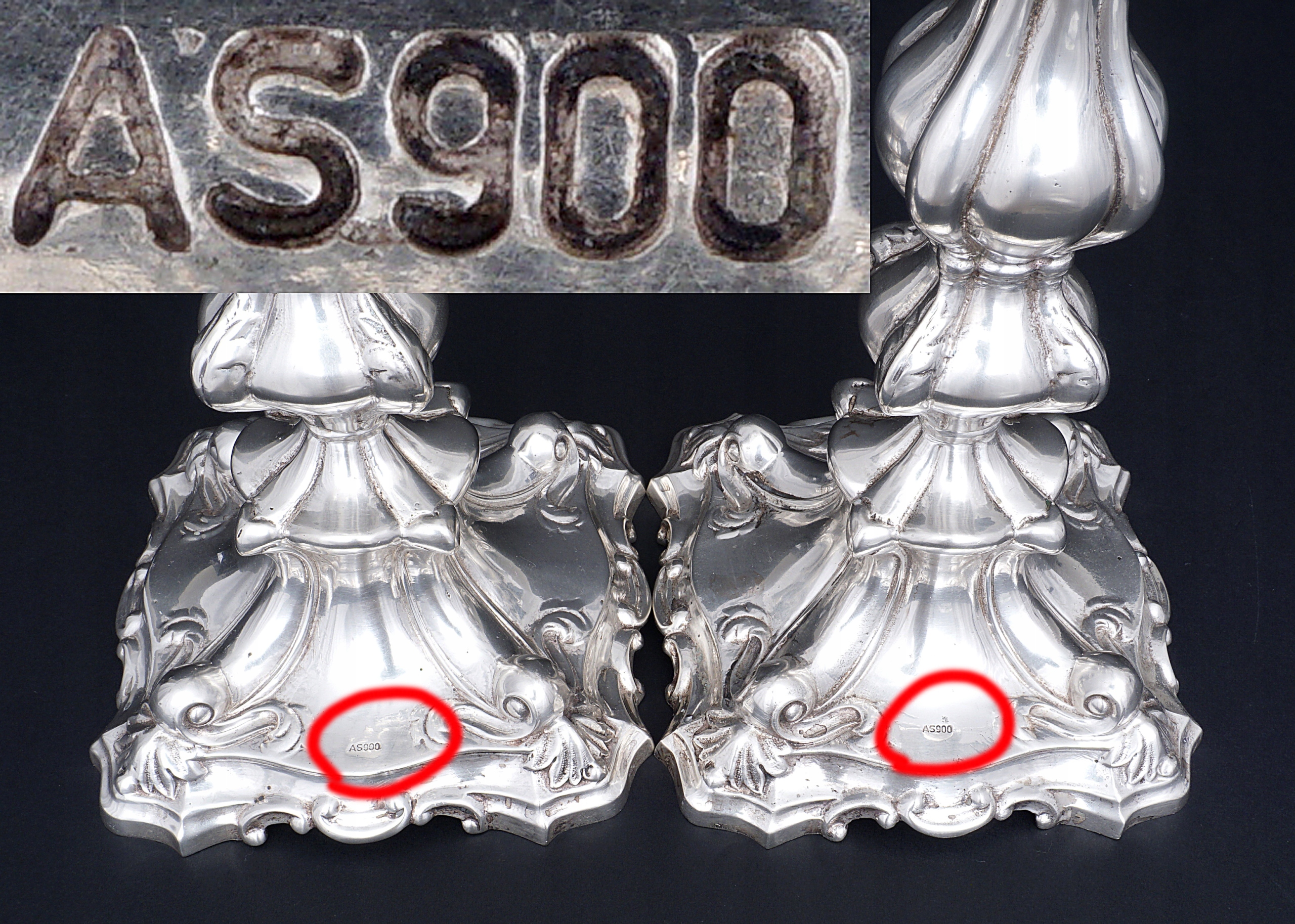 Пара срібних свічників - випробування 900 - 1,52 кг.