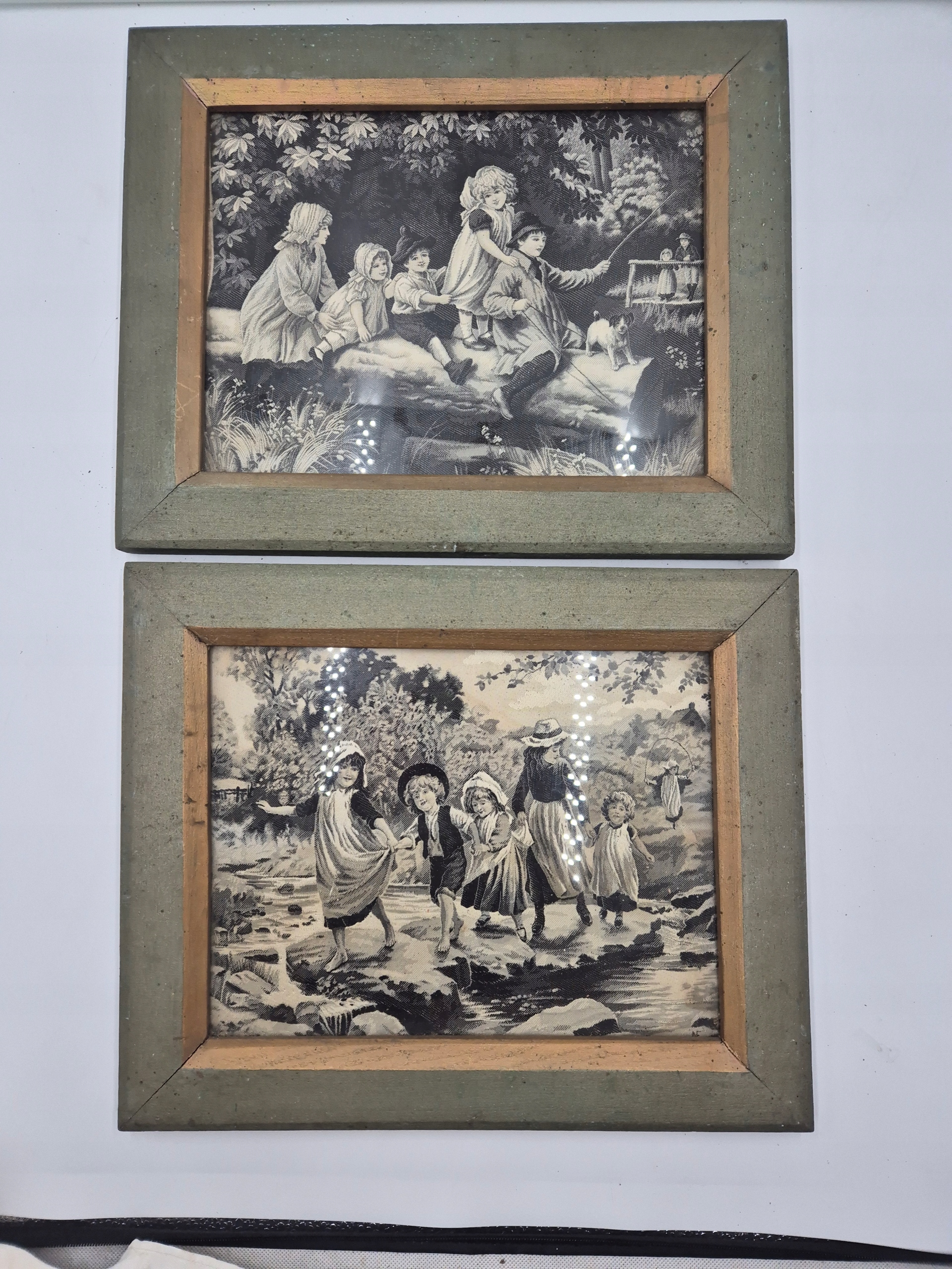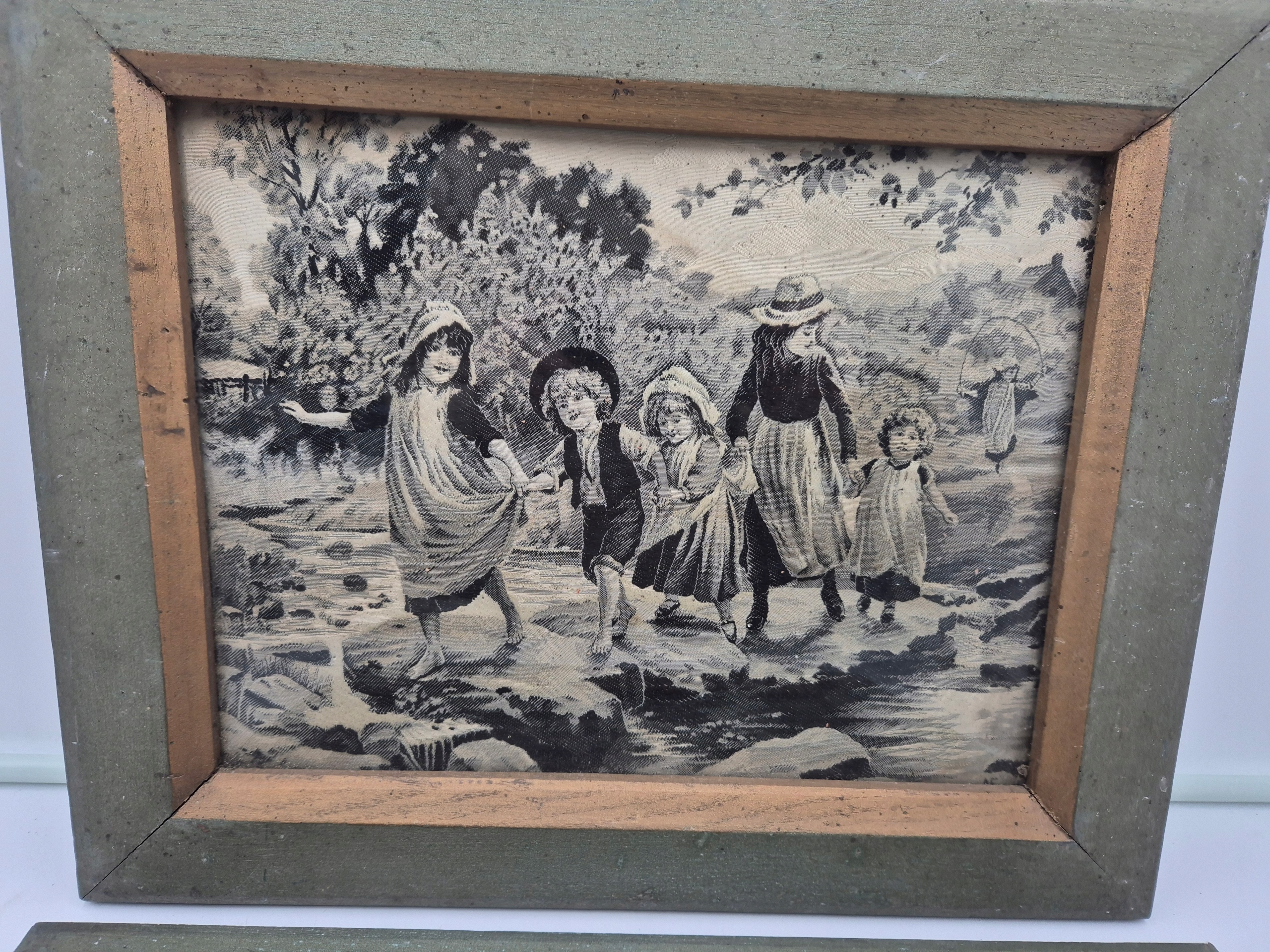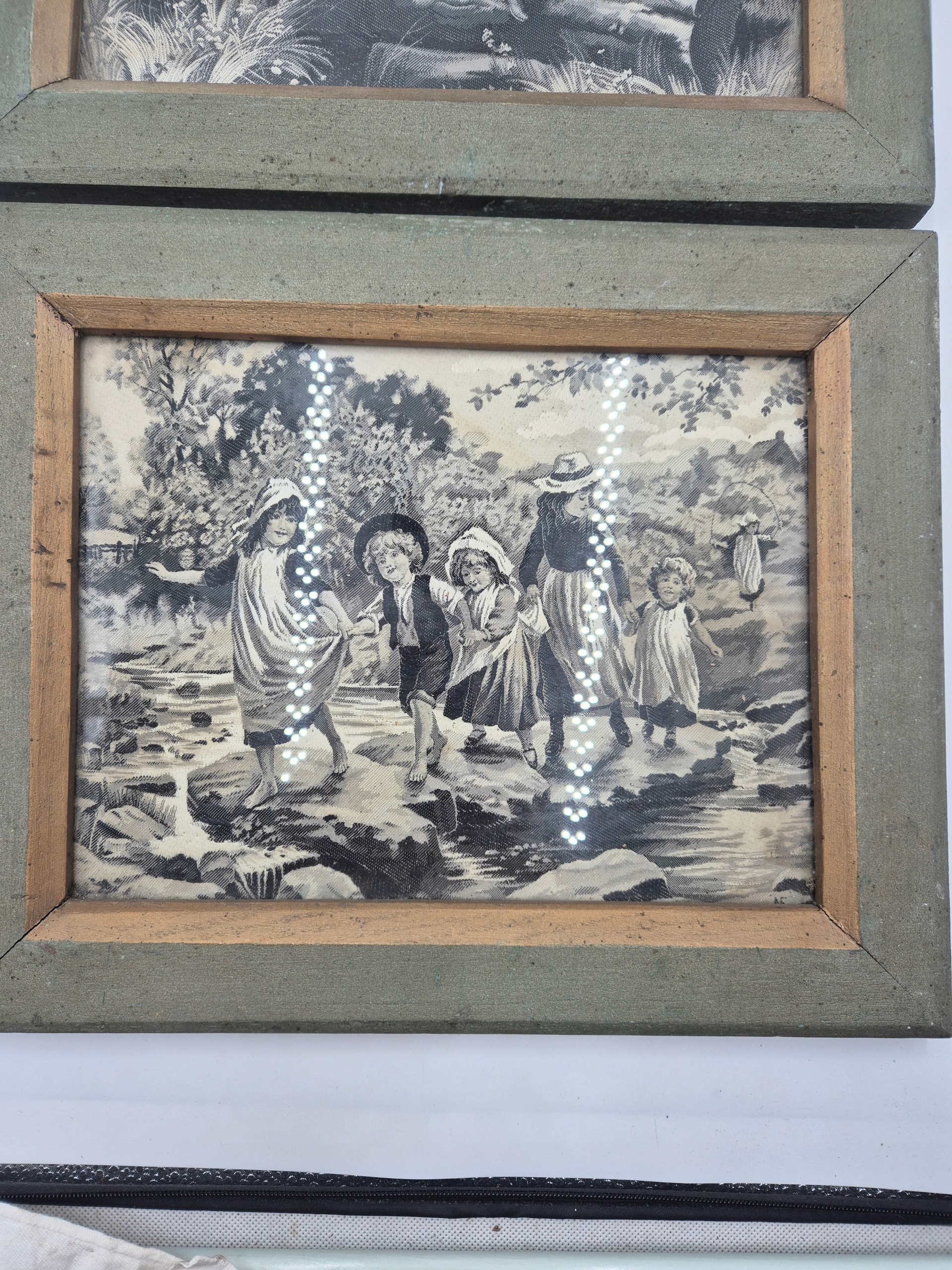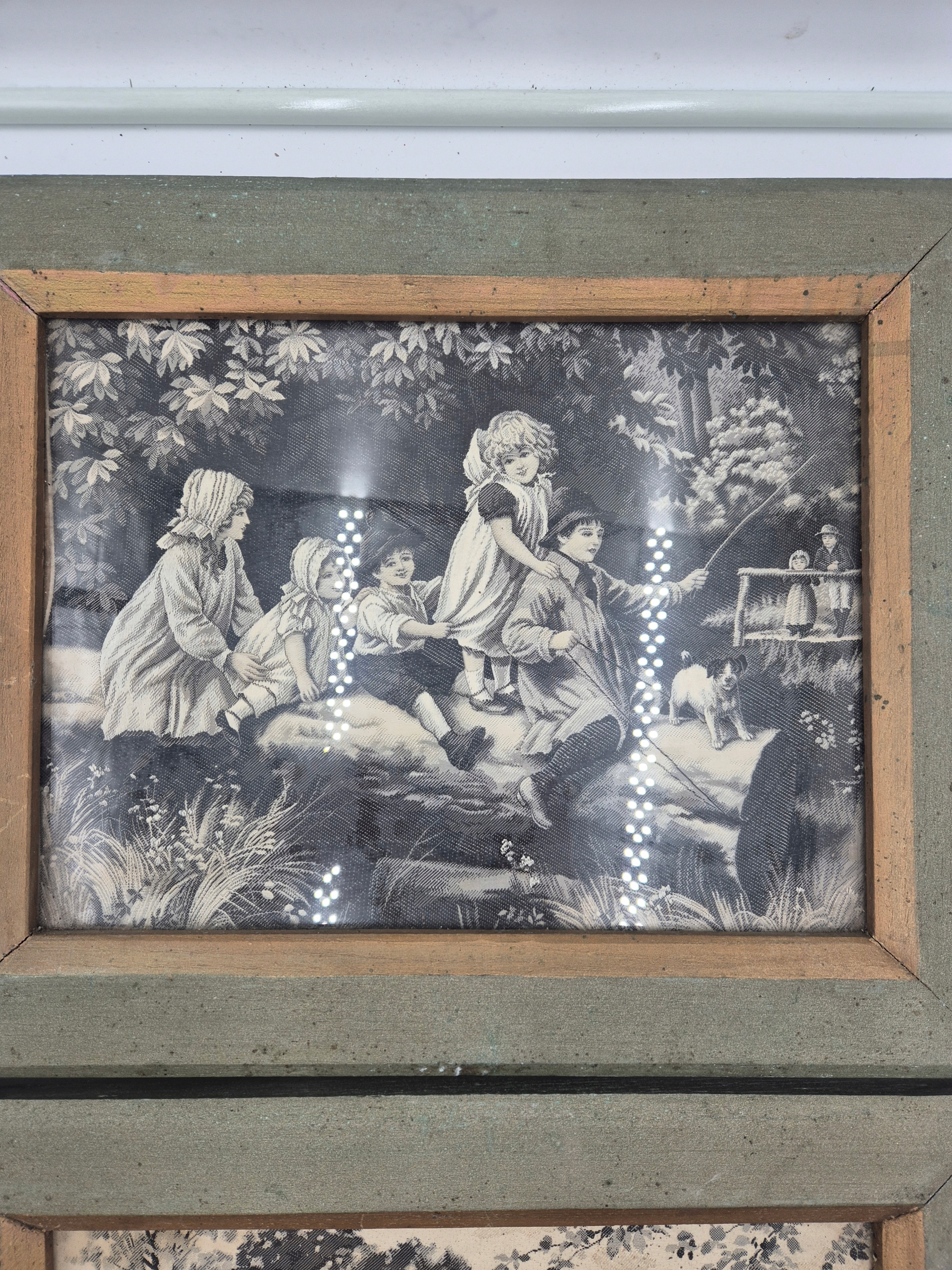 пара старих гобеленів у рамах за склом античної Франції 19 століття