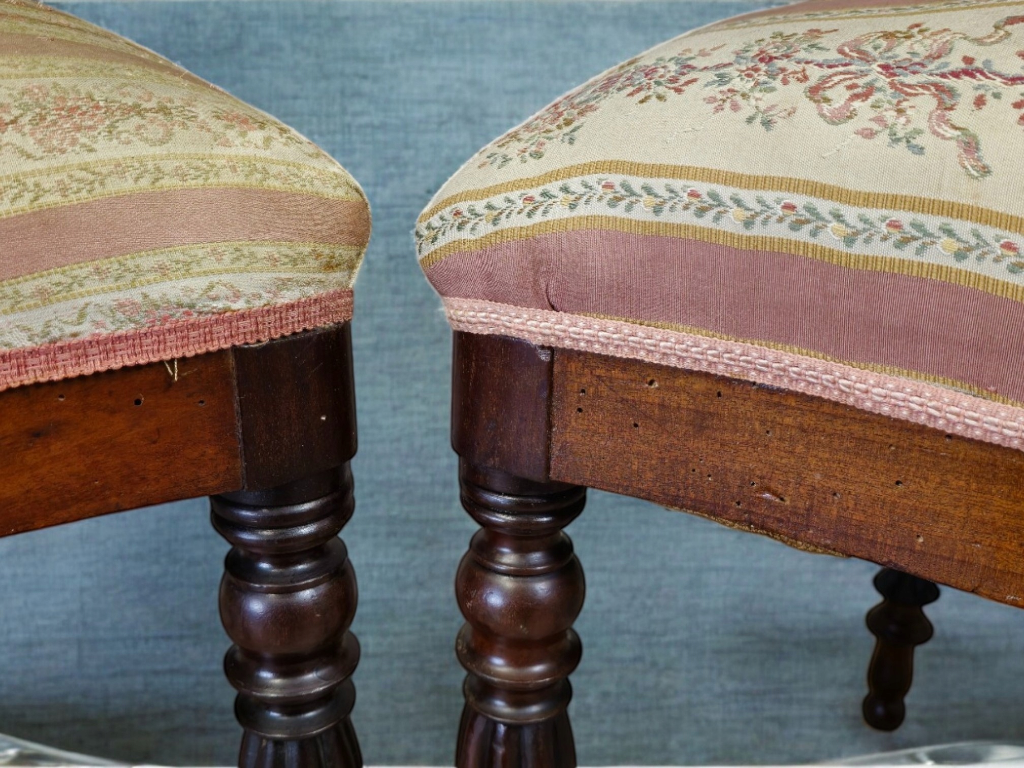 Я запрошую вас придбати стільці в стилі Бідермейєра/Людвіка Філіпп, виготовленого з Mahogany у ХІХІЙ. Хоча вони потребують візуального оновлення, вони зберегли свою стабільність та оригінальний шарм.