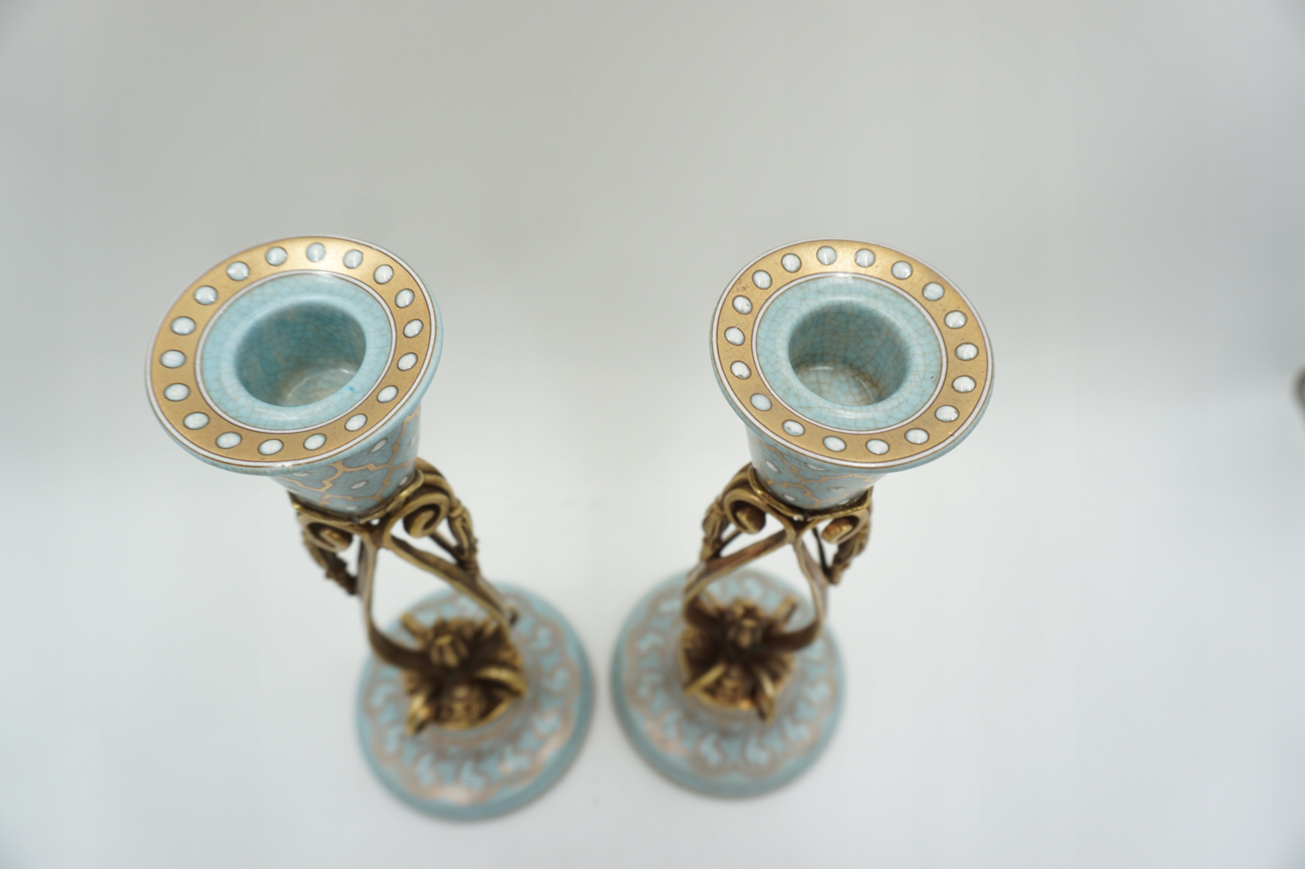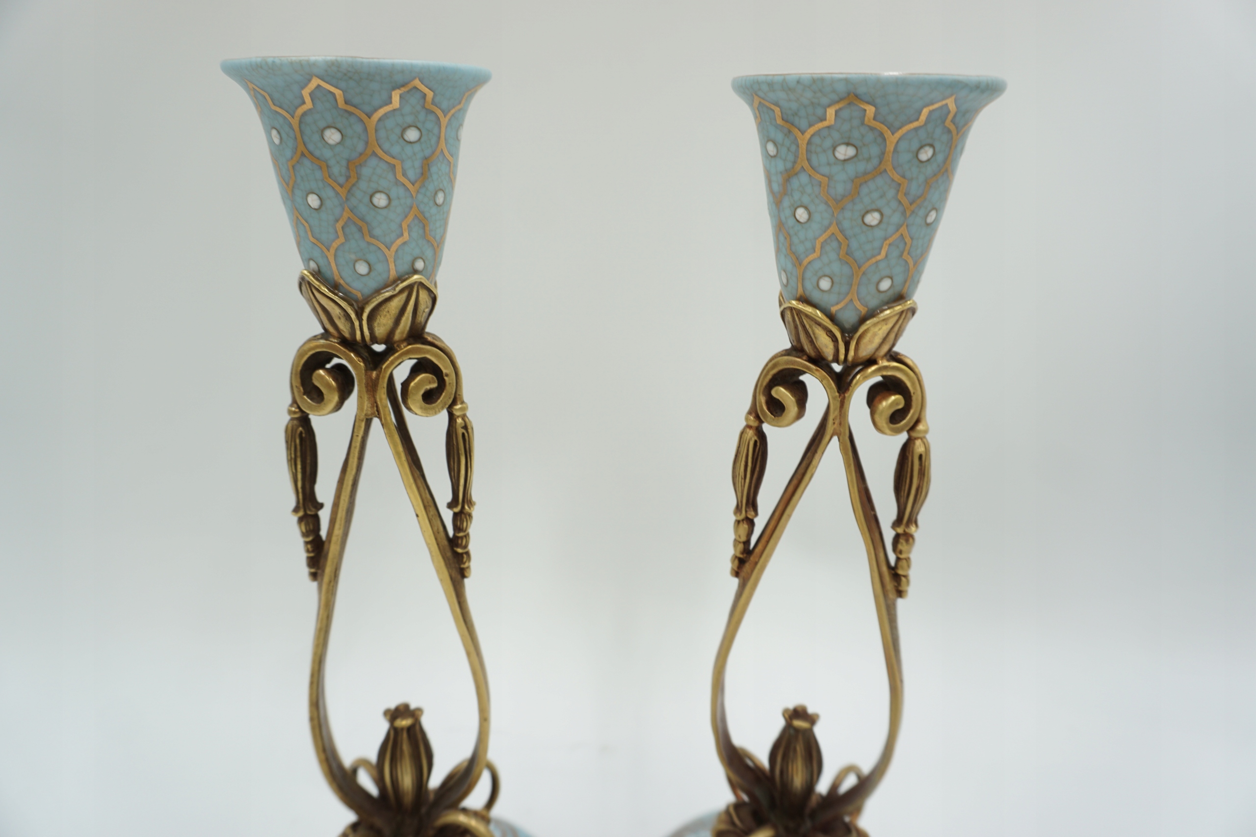Пара свічників синій порцеляновий+бронза.