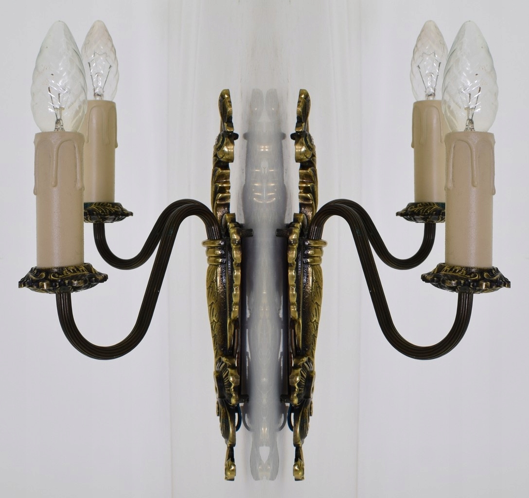 Пара вікторіанських бронзових палацових настінних світильників. Антикварні лампи.