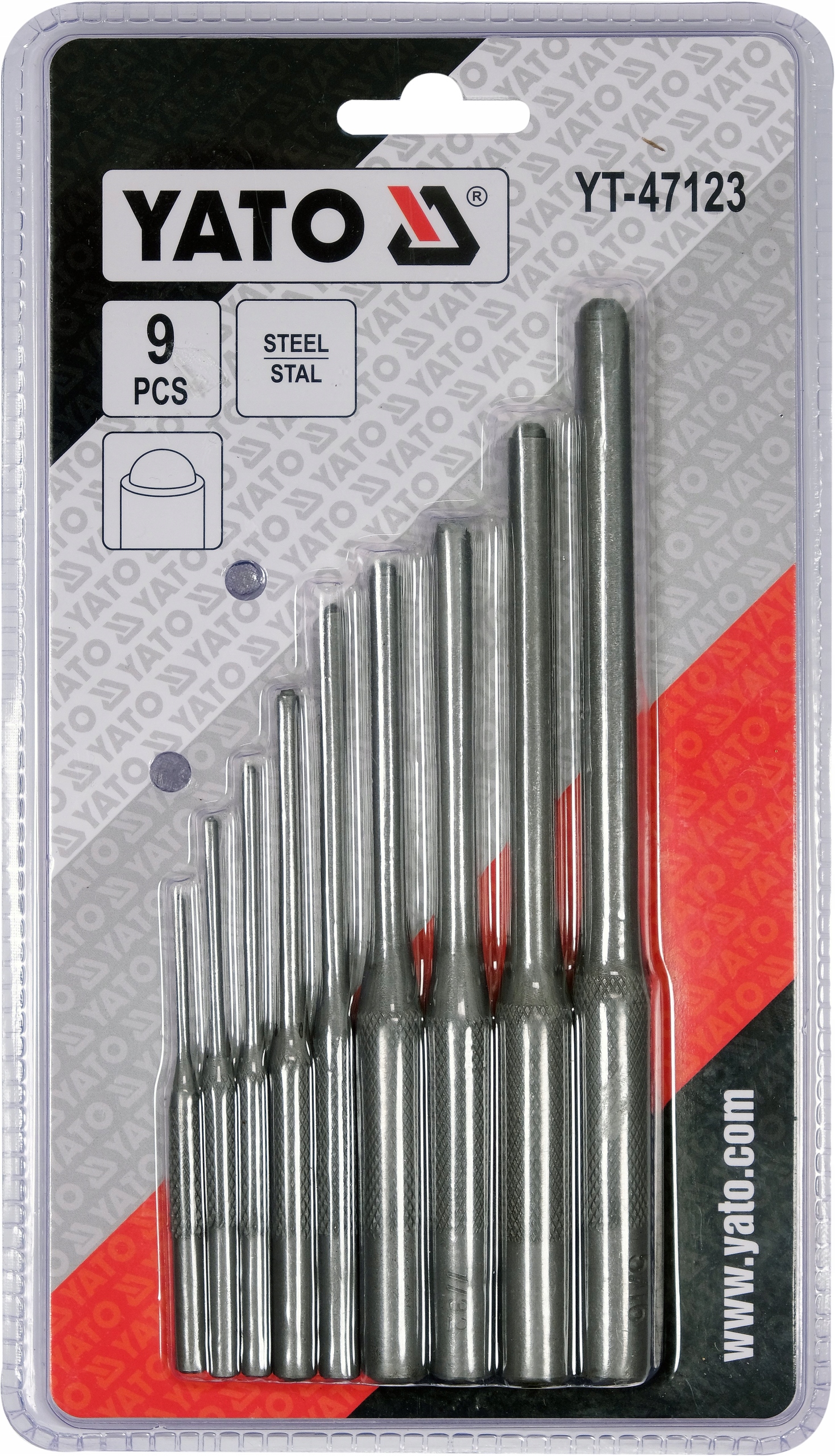 Набір із 9 паралельних пуансонів із закругленими наконечниками YATO.