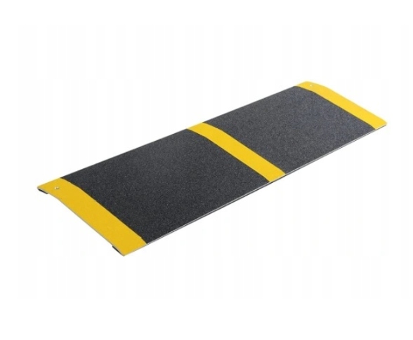 - Поверхня порогу рампи покрита антиковзаючою плівкою, яка характеризується високою адгезією та протиковзкими властивостями. Жовті попереджувальні наклейки з обох сторін роблять пандус добре помітним навіть у темряві.