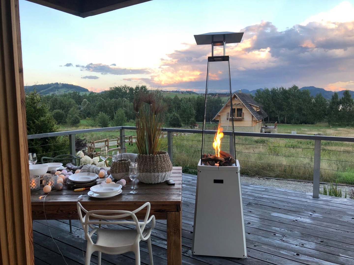 Дизайн обігрівача надзвичайно елегантний і є цікавою, привабливою прикрасою. Привабливий зовнішній вигляд і приємне тепло гарантують, що весняними, літніми та осінніми вечорами сади та тераси в будинках або ресторанах завжди будуть повні гостей.