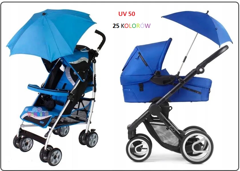 Кольори парасольок відповідають кольорам колясок, доступних на ринку Польщі.