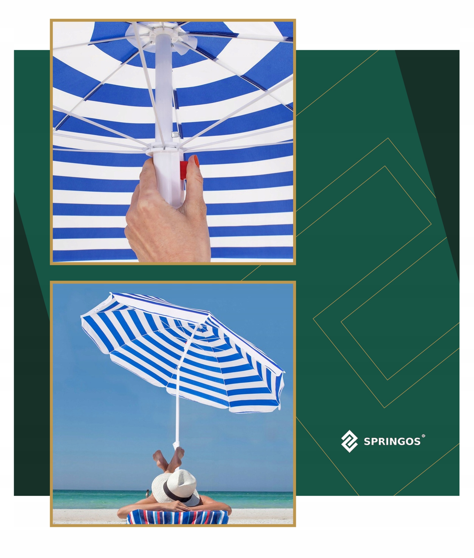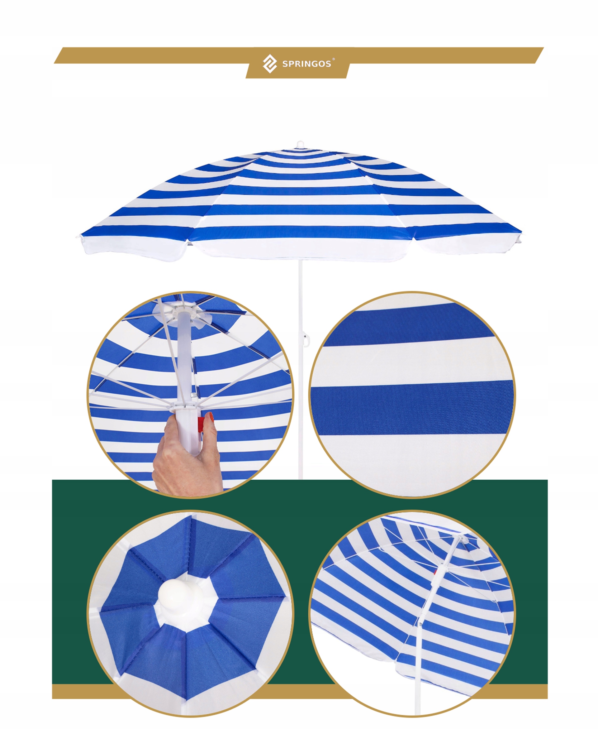 Пляжна парасолька Springos Beach Ви поширите і складете одним рухом , використовуючи кнопку - точно так само, як ви поширюєте парасольку дощу, що ходить по вулиці.