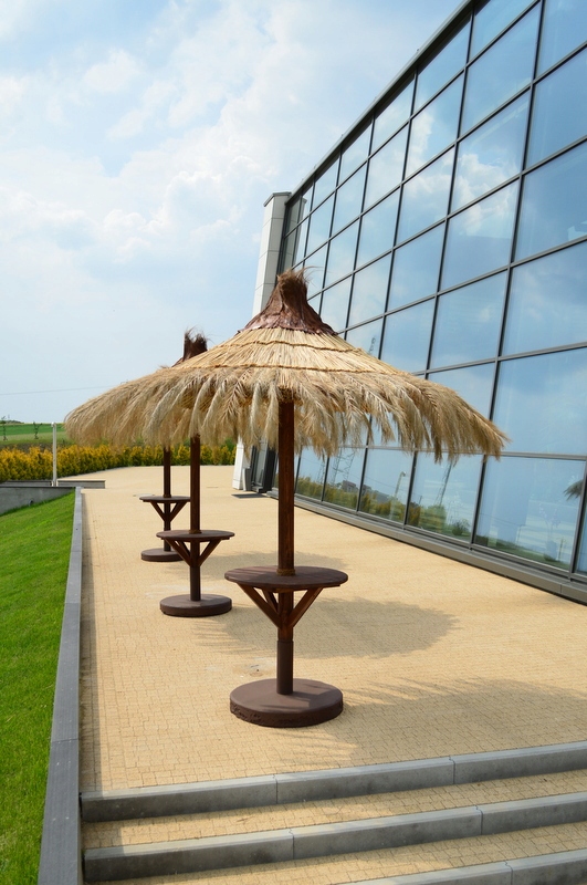 - Крім того, парасолька покрита натуральним листям і пальмовою корою, що створює екзотичний вигляд.