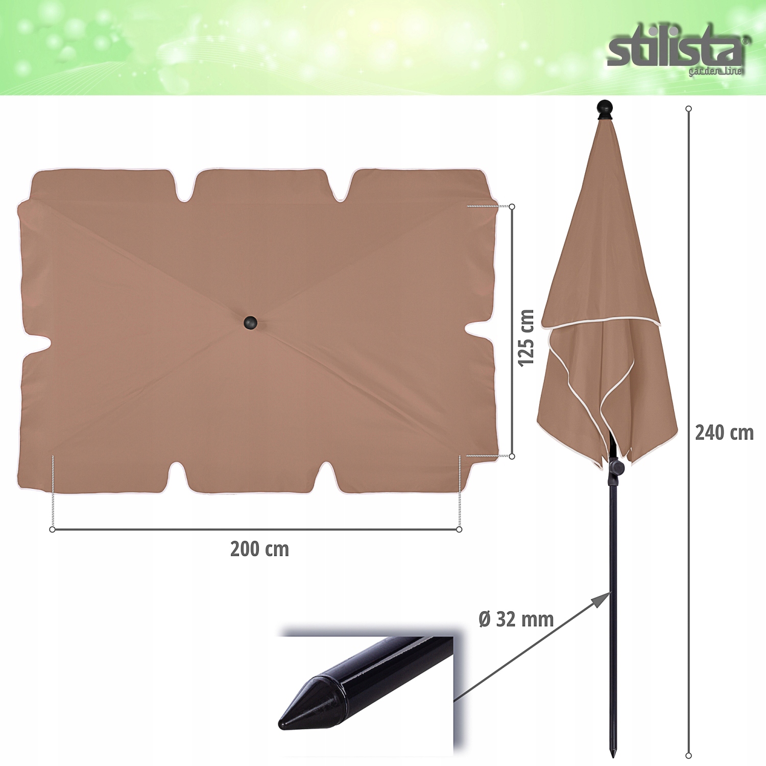 Парасолька бренду STILISTA® виготовлена з товстого та міцного поліестеру щільністю 160 г/м². Наш продукт має стабільну сталеву конструкцію, яка дозволяє легко складати та розкладати його всього за кілька секунд. Регульований кут нахилу навісу і можливість обертання дозволяють легко отримати оптимальну тінь, а завдяки використанню 4-х кронштейнів він дуже стійкий. Крім того, водонепроникний чохол захищає від легкого дощу. Парасолька бренду STILISTA ідеально підходить для балкона, тераси або саду.