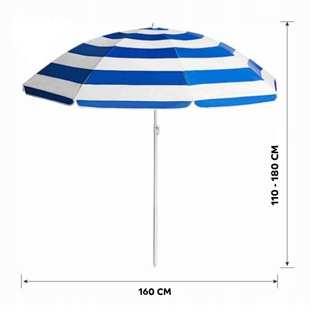 Складна пляжна парасолька - це ідеальне поєднання надійності, функціональності та стильного дизайну. Ця складна парасолька забезпечує неперевершений захист від шкідливих сонячних променів, забезпечуючи високий рівень захисту шкіри. Парасолька складається і її легко носити завдяки сумці, що входить в комплект. Ви можете взяти його з собою на пляж, в сад або на пікнік і завжди бути впевненим, що будете захищені від палючого сонця. Завдяки можливості регулювання висоти та нахилу ви можете налаштувати налаштування відповідно до ваших потреб. Навіс для парасольки має діагональ 160 см, тому в тіні може розміститися до двох людей.