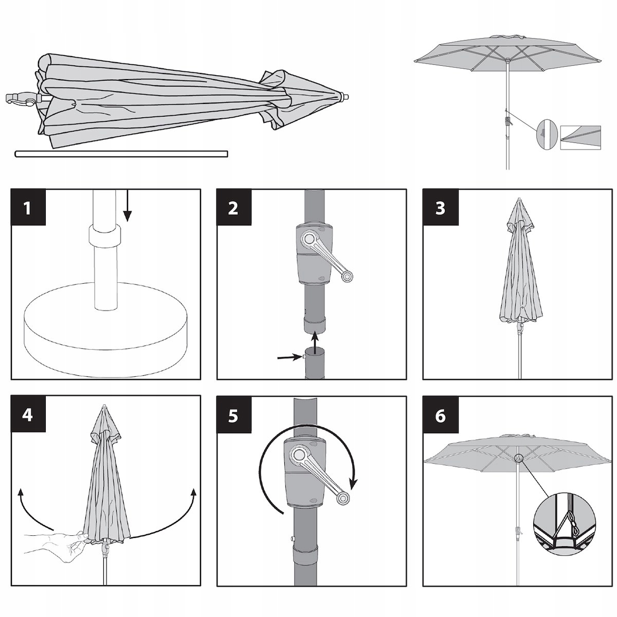 Каркас парасольки був практичним. Кривошипно-шатунний механізм зручний у використанні та значно полегшує розкладання та складання парасольки. Просто поверніть рукоятку кілька разів, і навіс повністю захистить ваш стіл або шезлонги від сонця.