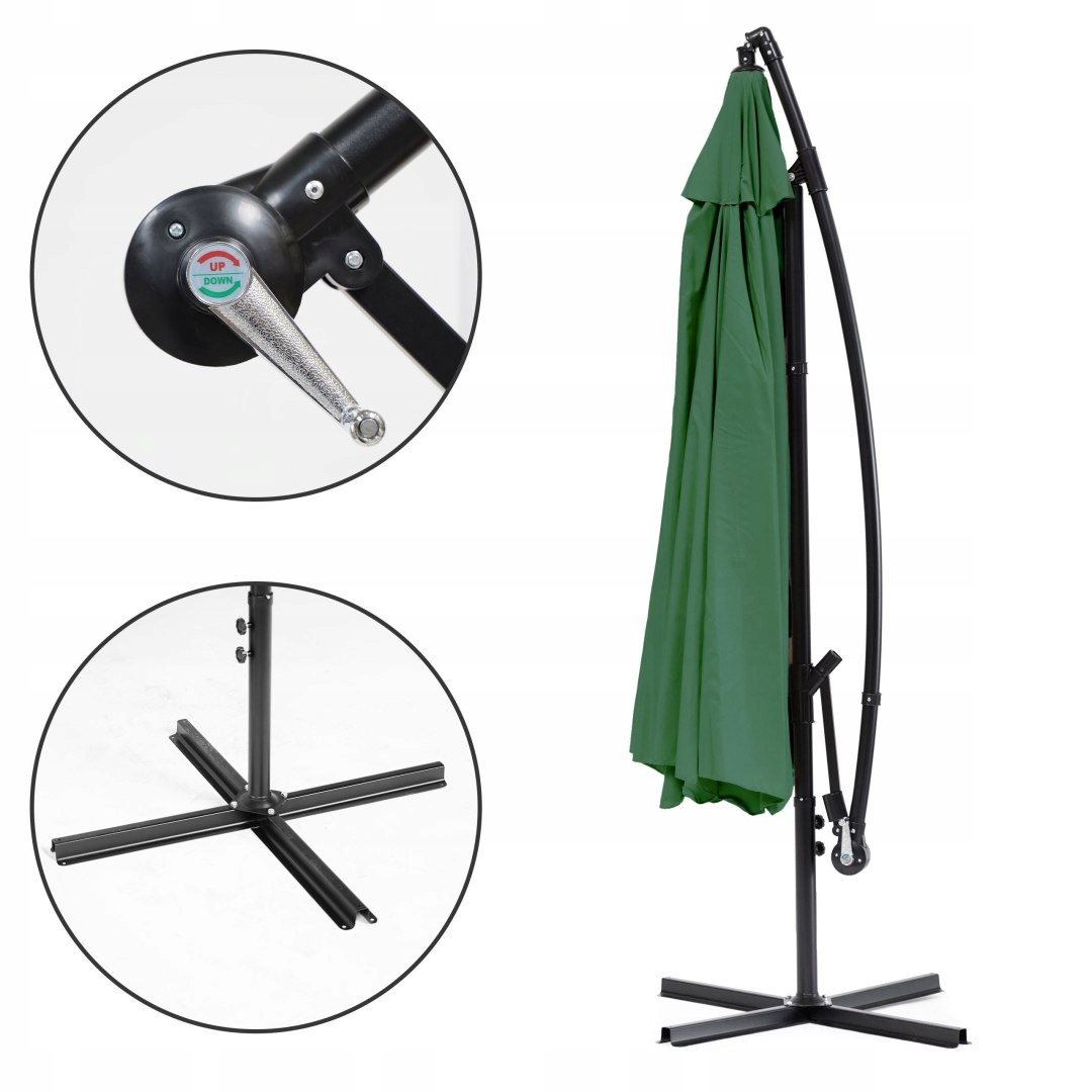 ☑️ Парасолька тримається на поперечному металевому каркасі, який необхідно прикріпити до землі за допомогою спеціальних отворів. Якщо ви хочете розташувати парасольку на м’якій поверхні, наприклад на газоні, ви можете використовувати універсальні обважнювачі для садових парасольок і заблокувати ним каркас.