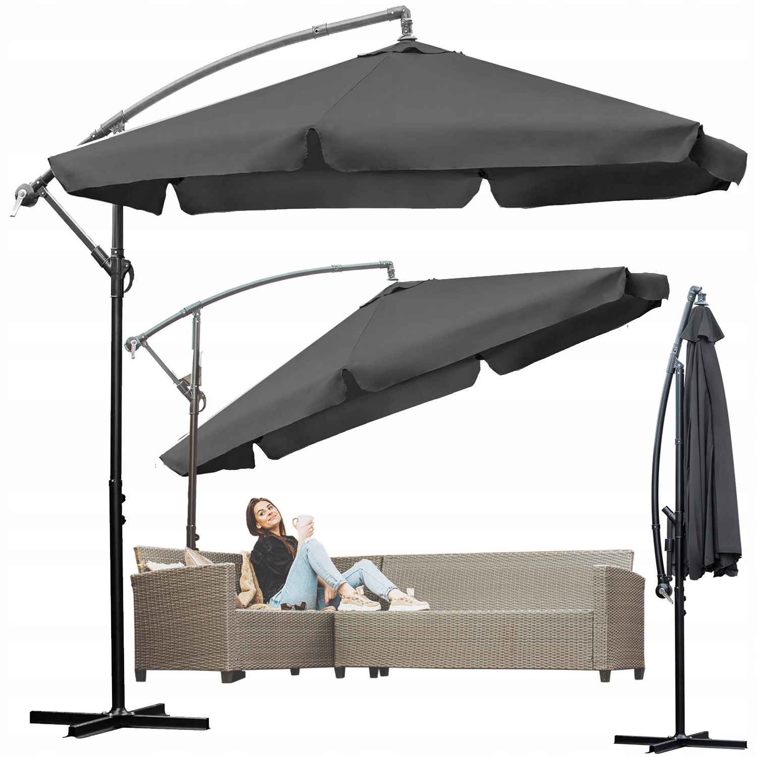 Завдяки парасольку, ви створите місце, яке вам підходить. Ви зможете разом випити смачну каву, поснідати чи подрімати. Вам більше не потрібна бейсболка, щоб сидіти на вулиці, ви можете сидіти в зручному шезлонзі та насолоджуватися моментом для себе. p>Садові парасолі — найпопулярніший спосіб захисту від сонця на вулиці. Престиж і елегантність ми найчастіше асоціюємо з ексклюзивними матеріалами, благородними кольорами, тонким шиком, скупими аксесуарами і невловимим шармом, який важко визначити. Здавалося б, що створити стильну композицію в саду буде складно, але завдяки нашій парасольці, яка виготовлена з поліефірної тканини щільного переплетення, цей матеріал має високу стійкість до мінливих погодних умов, сильного сонячного випромінювання та проникнення пилу. Стильний сірий колір, який підходить до будь-якого саду, здатність швидко розкладатися і складатися, а конструкція парасольки з легкого і стійкого до деформацій металу забезпечує довговічність і гарантує, що виріб прослужить багато років без слідів корозії.