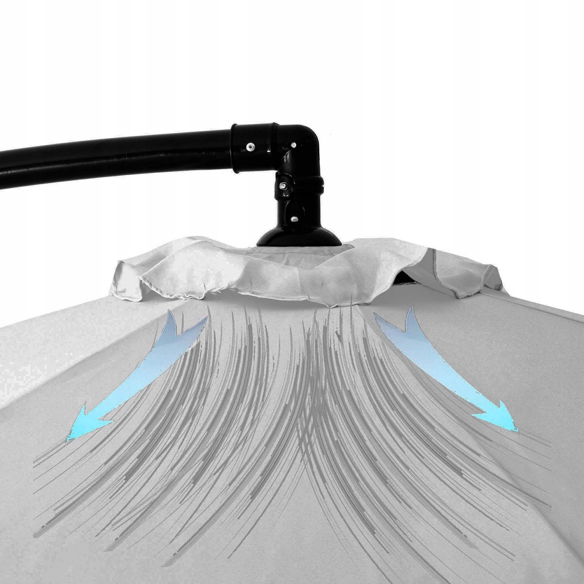 Перебування під укриттям від сонця - з парасолькою або вітрилом - може бути пов’язане з додатковим нагріванням і відсутністю циркуляції в безвітряні дні. Наша парасолька оснащена вентиляційним отвором у верхній частині купола, що однозначно підвищить комфорт використання, особливо якщо під парасолькою гратимуть найменші діти.