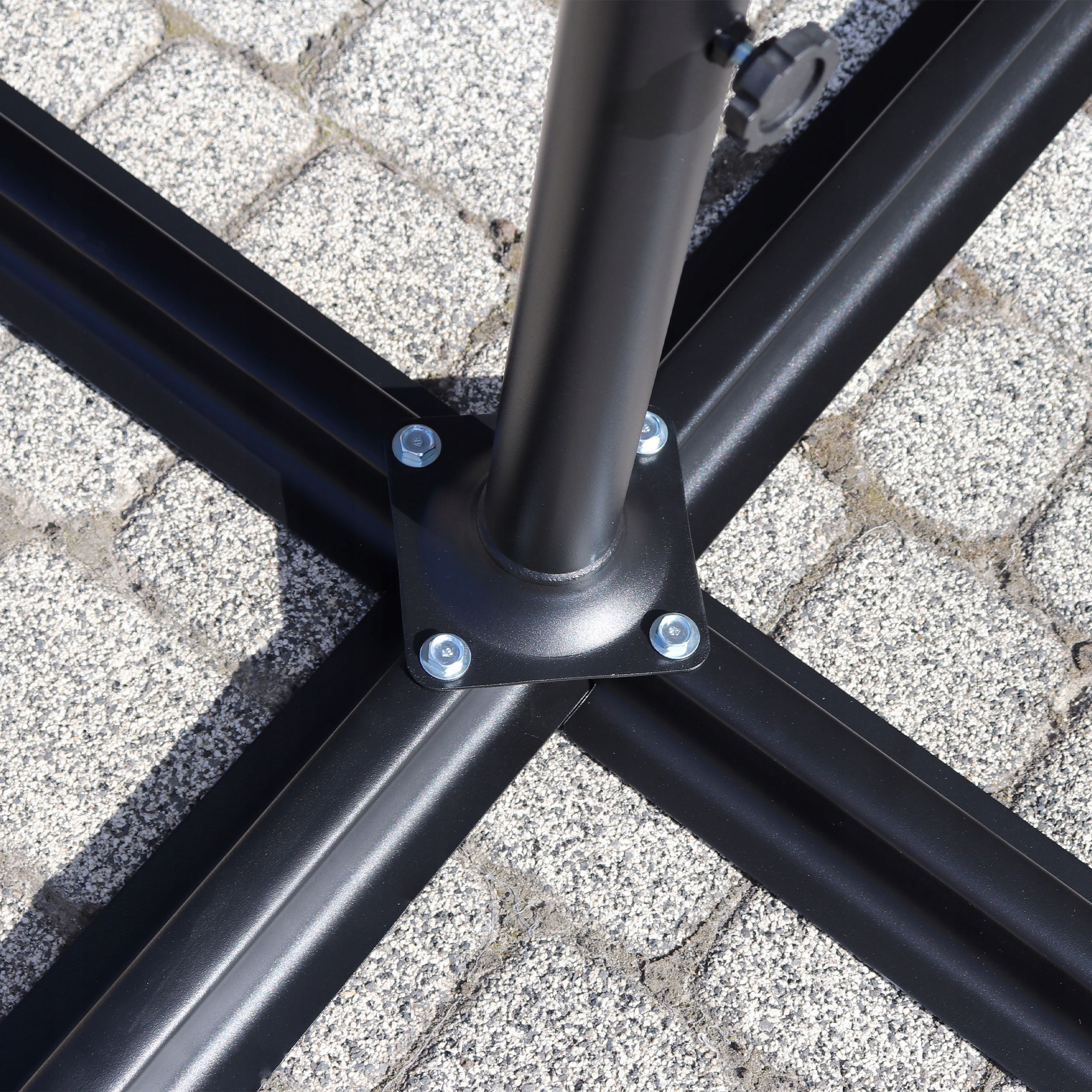 - Рекомендується використовувати додаткову вагу або прикріпити його до землі (наприклад, забетонувати основу), щоб забезпечити стійкість парасольки, особливо під час сильного вітру.