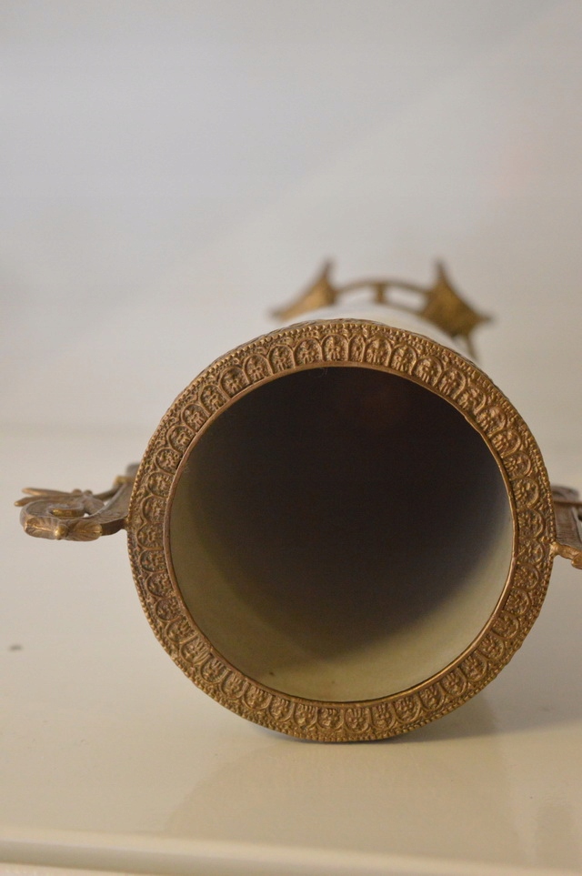 Привіт, сьогодні я хочу запропонувати вам порцелянову вазу та чашку з бронзовою фурнітурою. Чудово. Ця чудова річ чудово впишеться в будь-яку стильну кімнату.