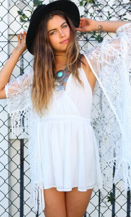 Виготовлена з повітряного матеріалу, ідеальна для спекотних днів . Має рукави 3/4, прикрашені витонченою бахромою, а також низ покривала, який чудово підкреслить засмагу.