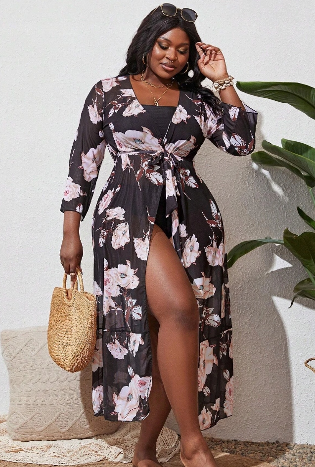 ПАРЕО ПЛЯЖНЕ НА ЗВ'ЯЗКУ БОЛЬШИЙ РОЗМІР ЧОРНЕ 48 ГОЛОВ