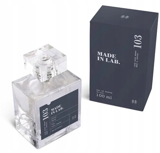 Чим пахне Made In Lab 103? Верхні ноти: Бергамот і Чорна Смородина; Серце аромату містить квіткові та пряні ноти, включаючи чорний перець і троянду, які додають глибини та складності. Базові ноти складаються з пачулі та сандалового дерева, які надають аромату теплий і землистий відтінок.